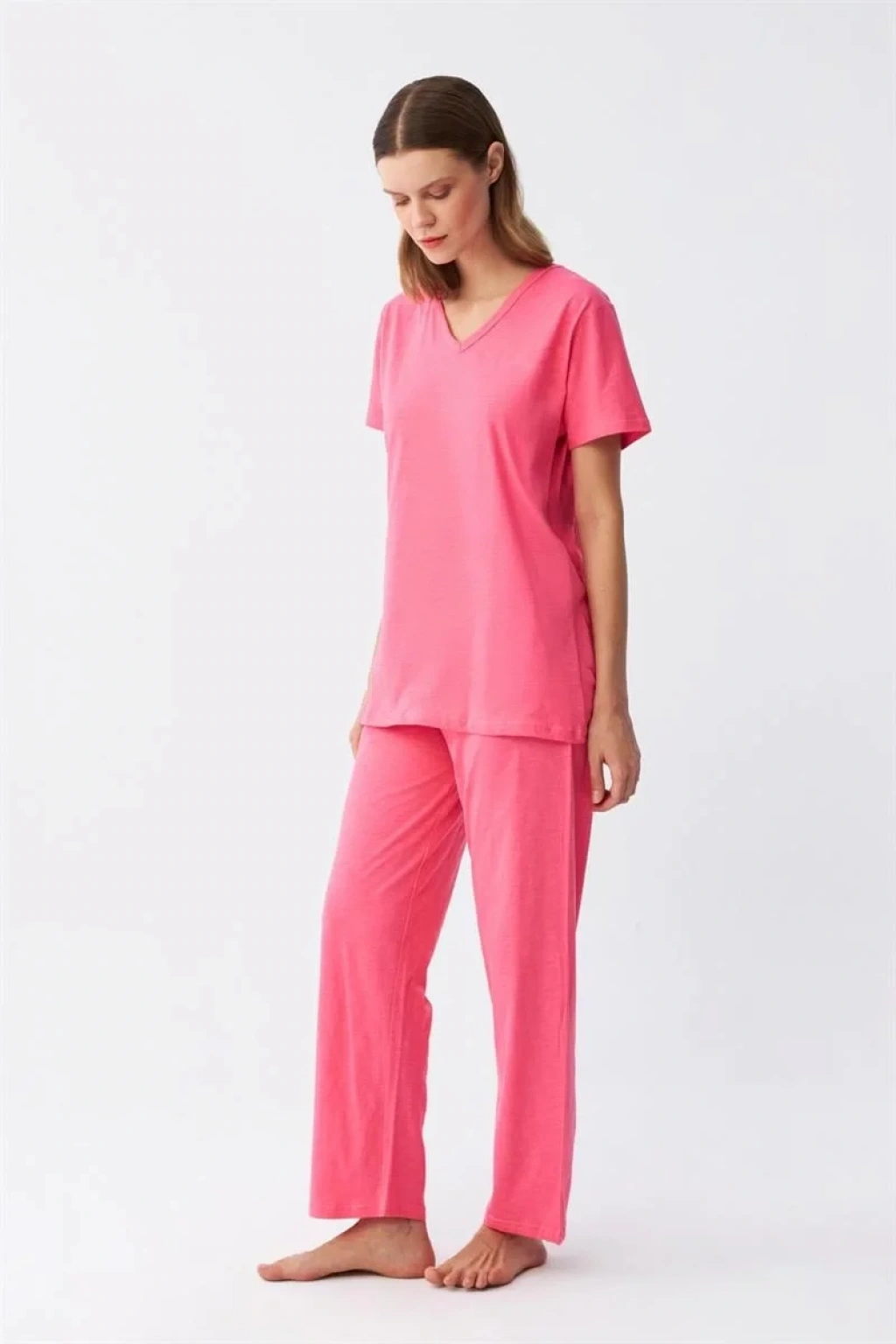Çamaşır Kenti markasının şık ve rahat tasarıma sahip Kadın Kısa Kol Pamuk Penye Pijama Takımı ile konforun tadını çıkarın.