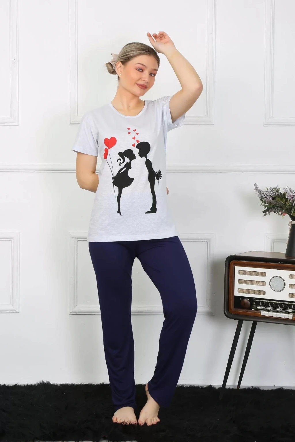 Çamaşır Kenti Kadın Kısa Kol Penye Pijama Takımı ile evinizin konforunda şıklığı yakalayın!% 100 PamukKadın %100 Pamuk Kısa Kol Pijama TakımMankenin üzerindeki beden M bedendir.