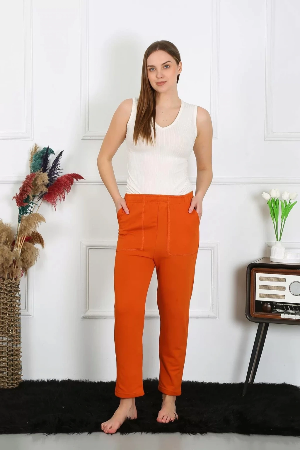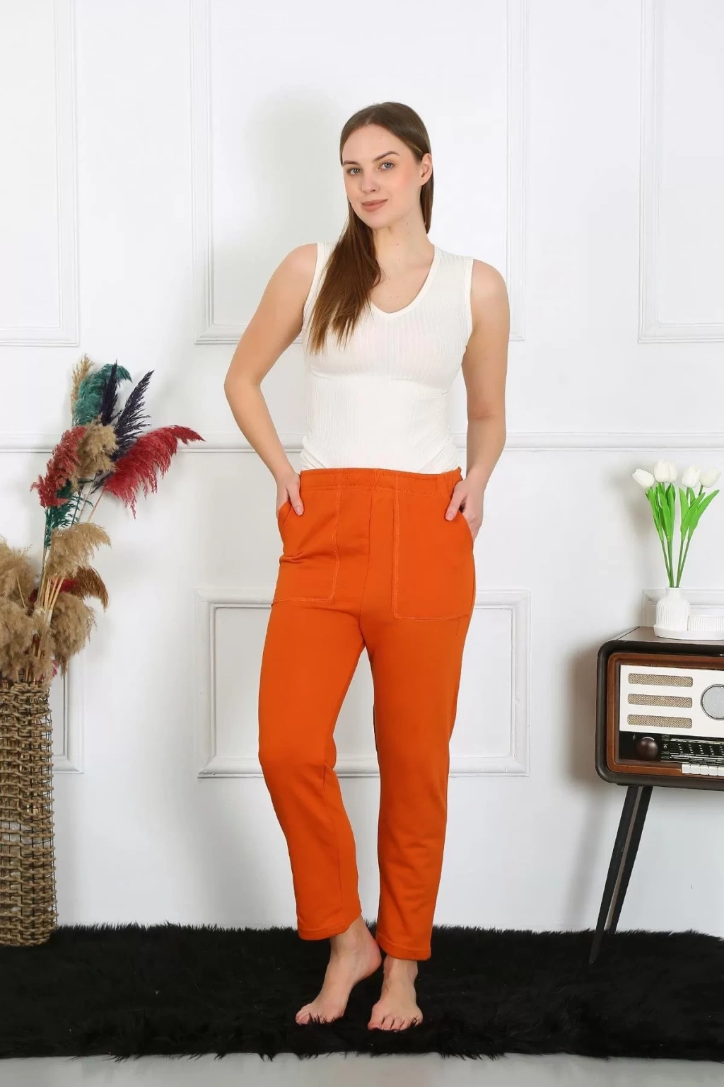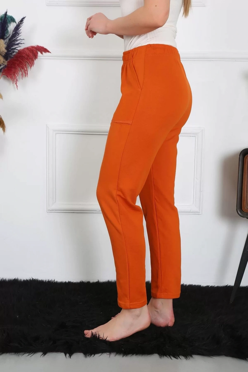 Çamaşır Kenti marka Pamuk Cepli 3 İplik Alt Eşofman Kiremit, spor yaparken rahatlığınızı ve şıklığınızı ön planda tutar.