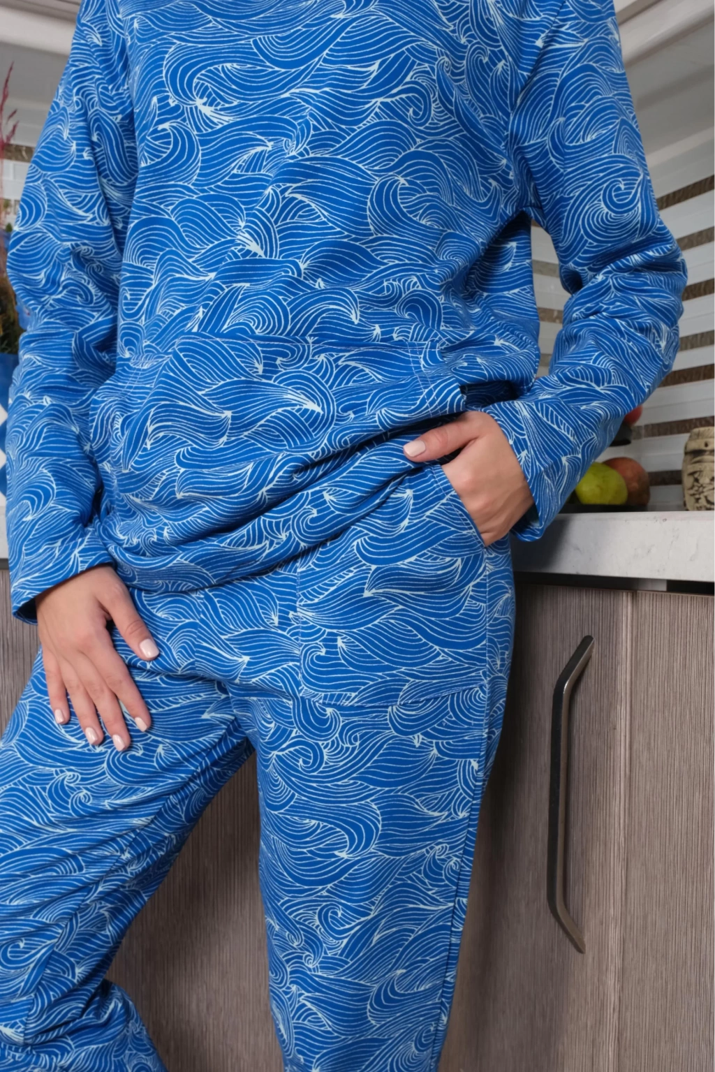 Çamaşır Kenti Kadın Pamuk Kapşonlu Cepli 3 İplik Saks Eşofman Takımı, spor salonundan günlük hayata kadar her ortamda şıklığınızı ve rahatlığınızı korumanızı sağlar.