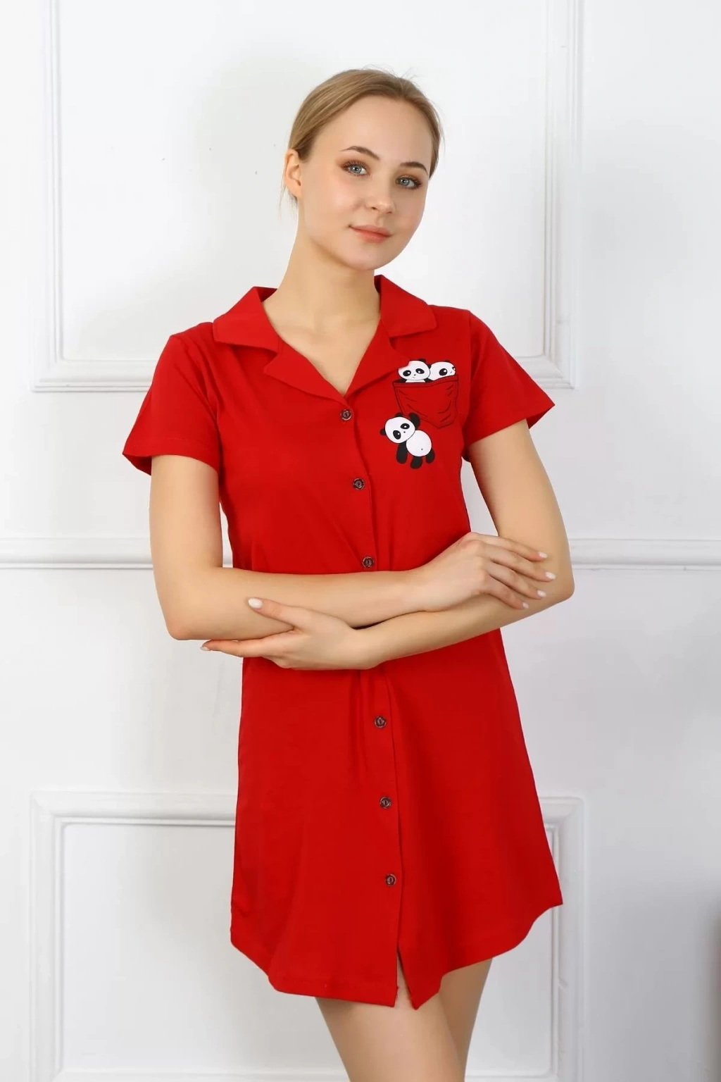Çamaşır Kenti markasının özel tasarımı olan Kadın Pamuk Penye Kısa Kol Düğmeli Kırmızı Tunik Gecelik , şıklığı ve rahatlığı bir arada sunuyor.