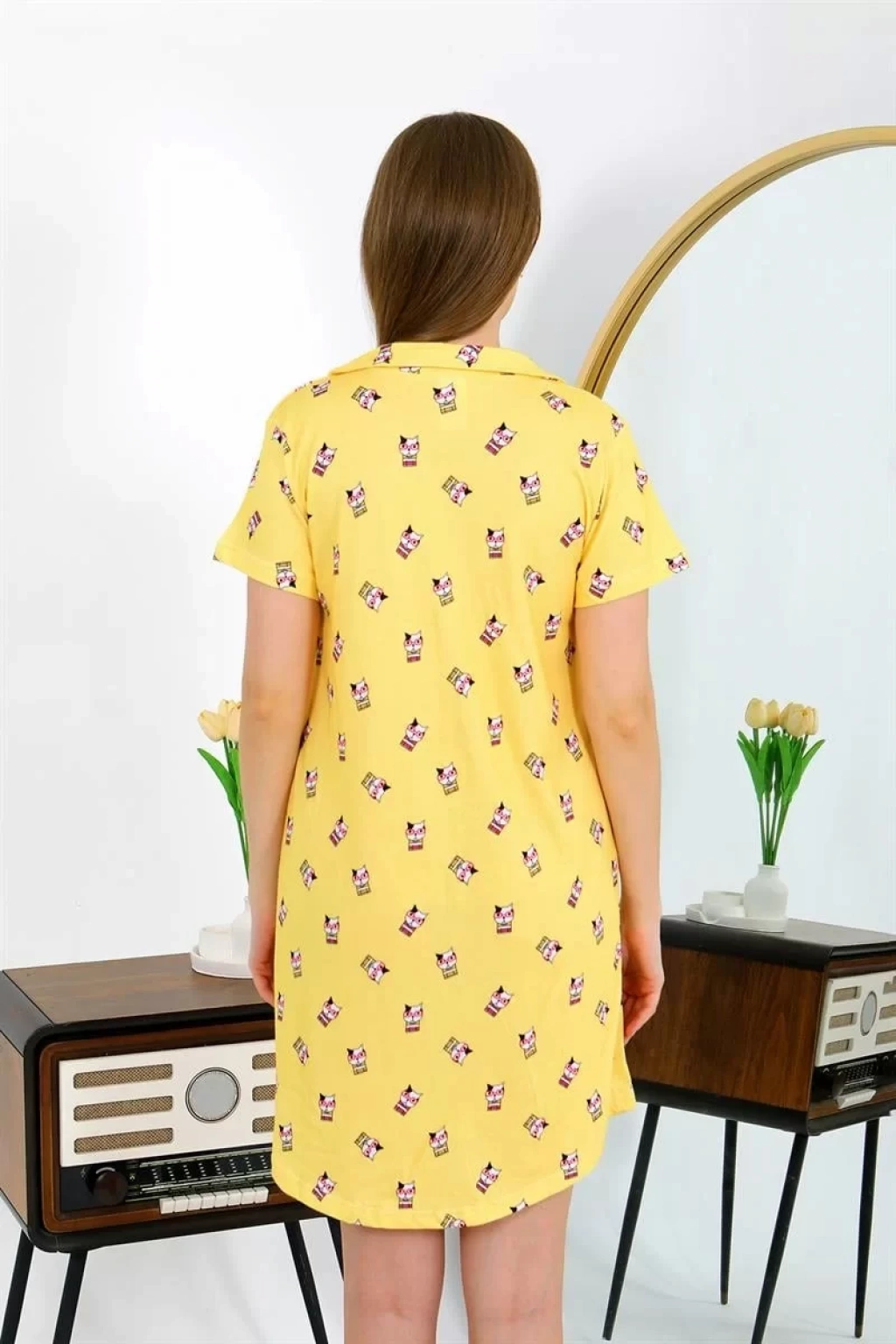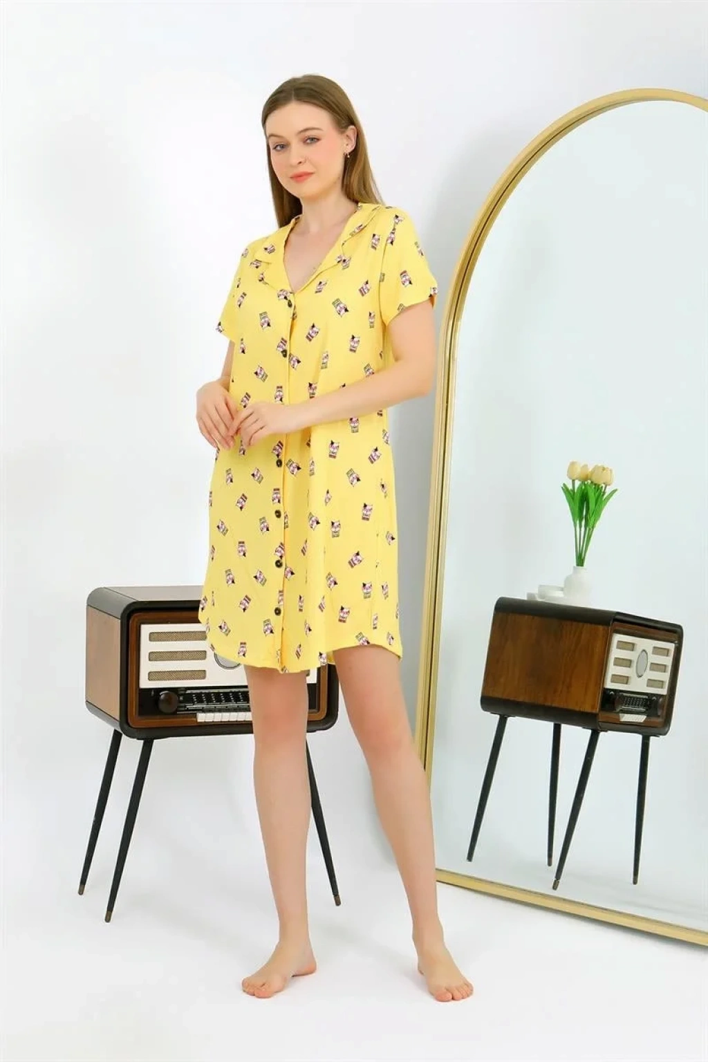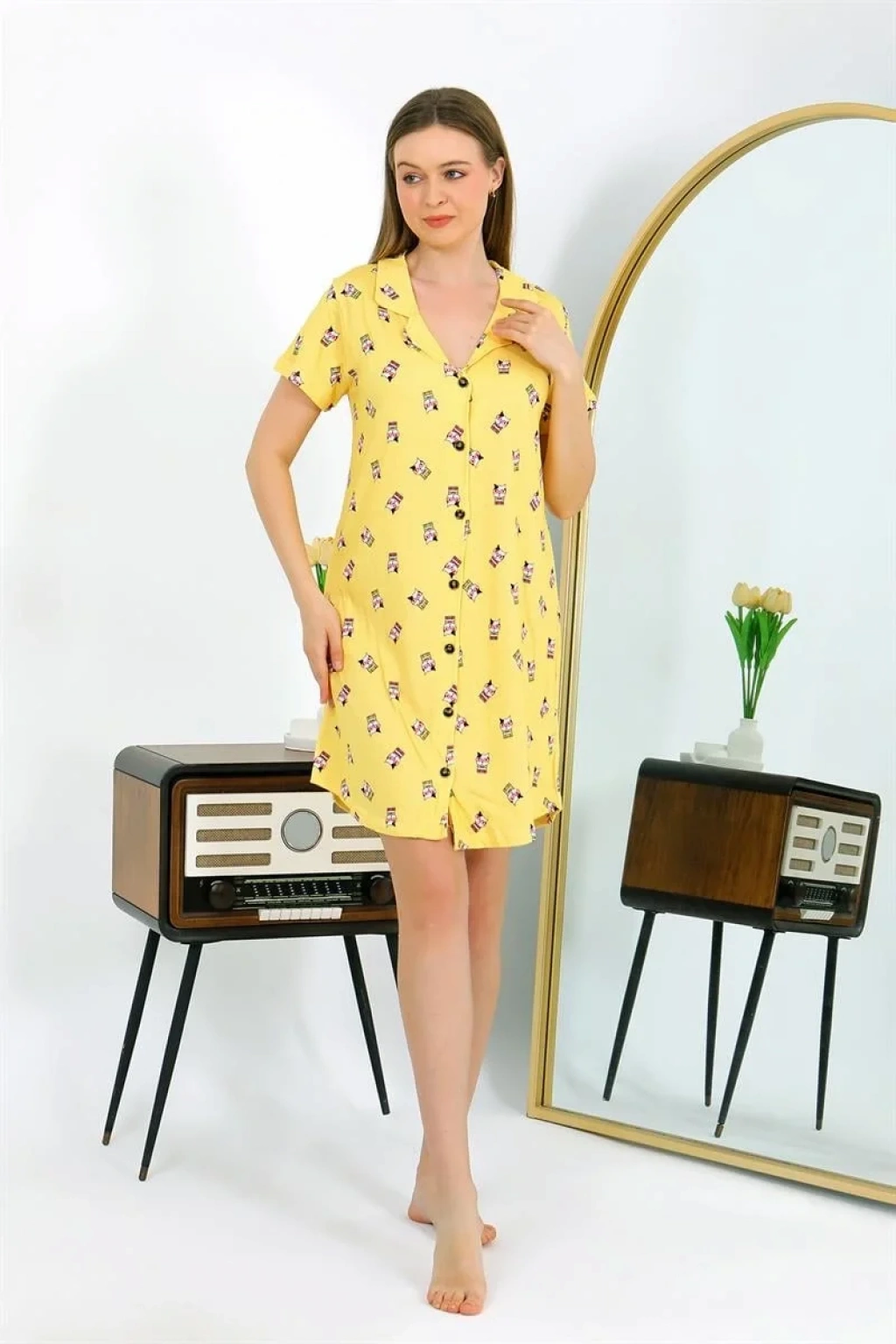 Bu şık Sarı Tunik Gecelik, Çamaşır Kenti kalitesiyle artık gardırobunuzdaki vazgeçilmez parçalardan biri olmaya aday! Pamuk penye kumaşıyla hem şıklığı hem de rahatlığı bir arada sunan bu ürün, kısa kollu tasarımı ve düğmeli detaylarıyla dikkat çekiyor. Geceleri rahatça kullanabileceğiniz bu tunik gecelik, sizi hem şık hem de konforlu hissettirecek. Penye gecelik kategorisinde yer alan bu ürünü hemen sepetinize ekleyin ve konforun keyfini yaşayın!