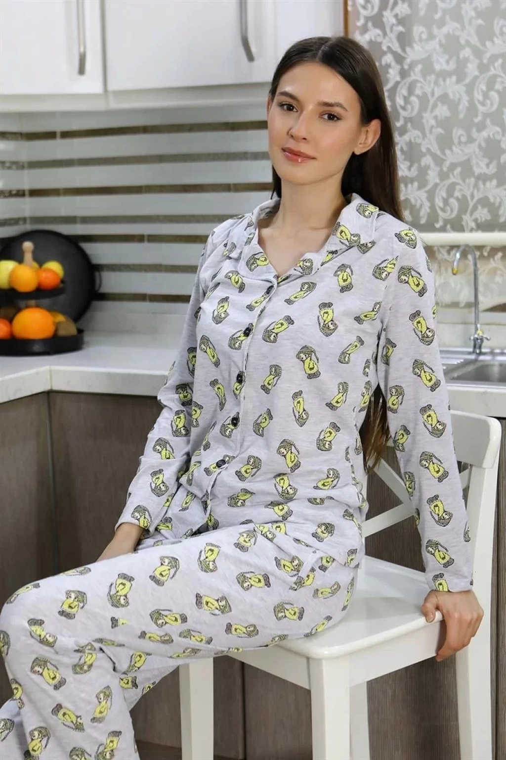 Bu Kadın Pamuk Penye Önden Düğmeli Uzun Kol Pijama Takımı, hem evde dinlenirken hem de gece giyilebilirken şıklığı ve konforu bir arada arayan kadınların tercihi olacak.