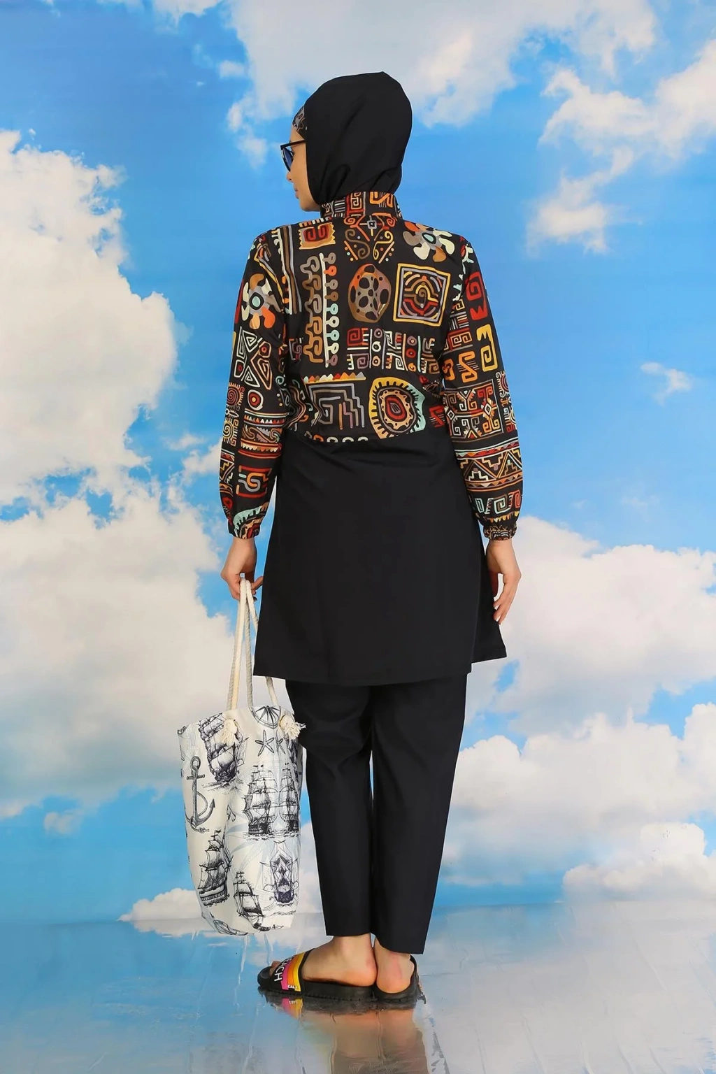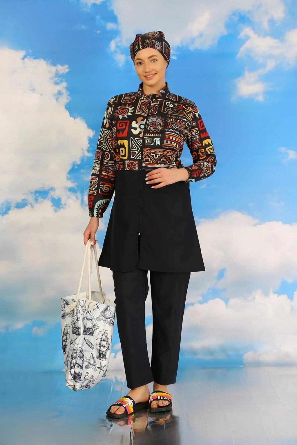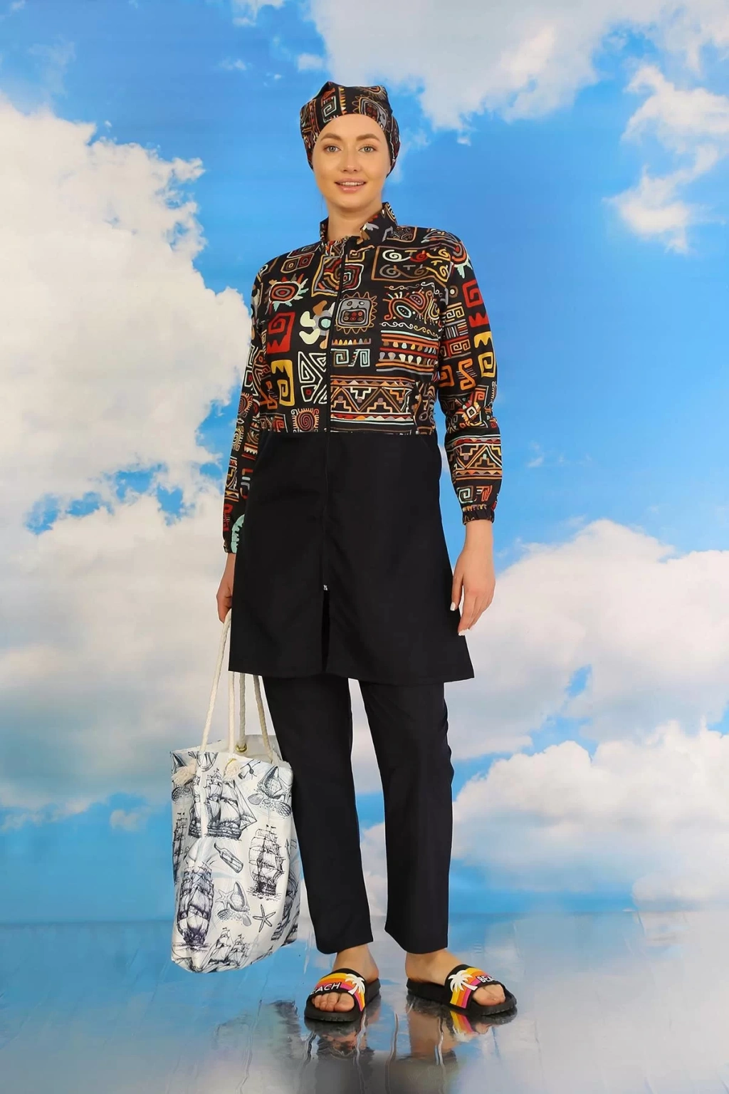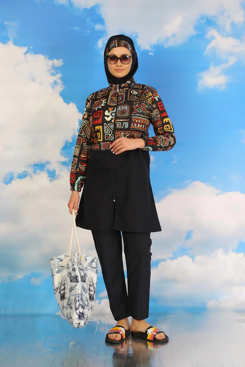 Çamaşır Kenti'nin Kadın Pantolonlu Desenli Tam Tesettür Mayo Lacivert modeli ile plajda şıklığı ve rahatlığı bir arada yaşayabilirsiniz.