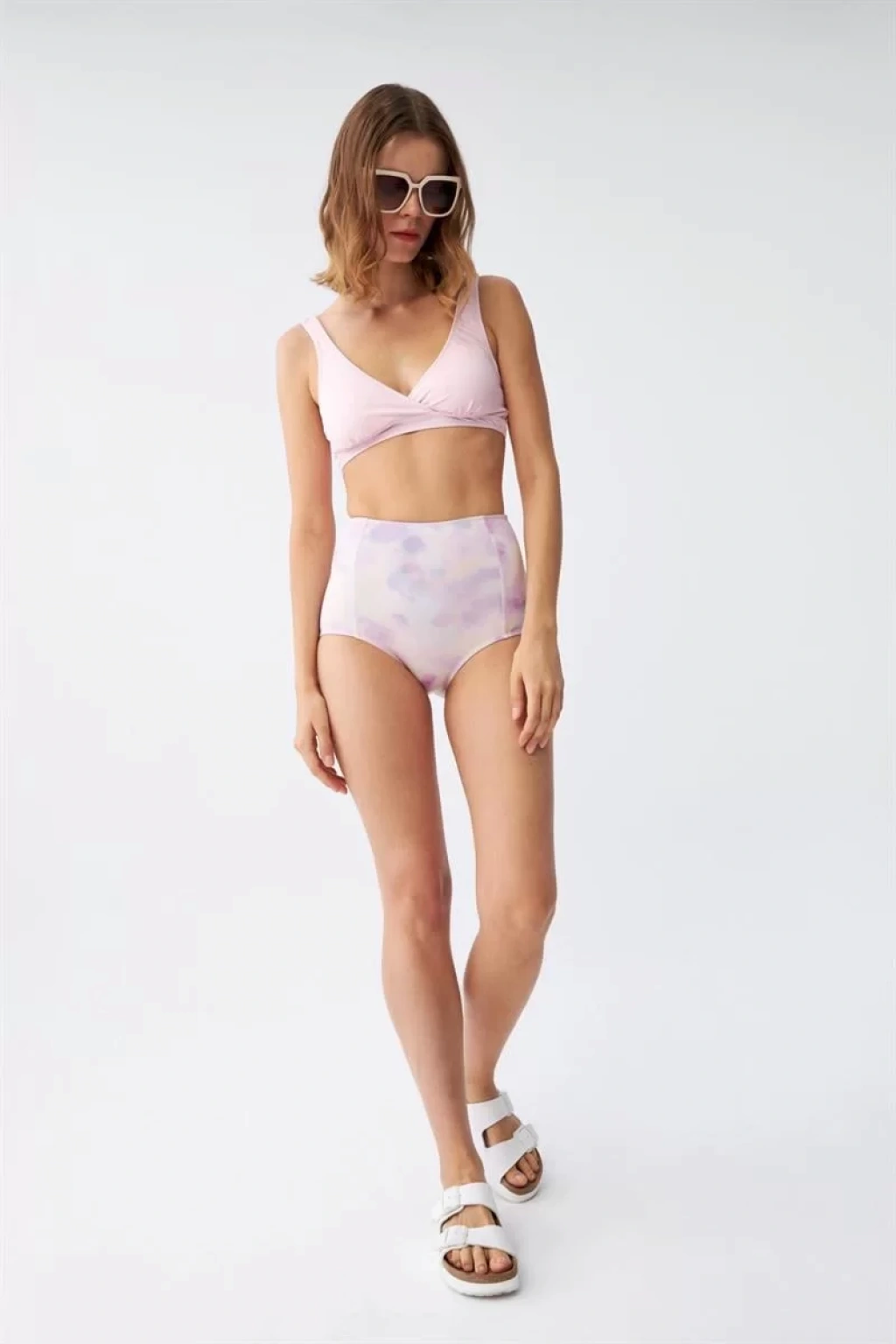 Pastel desenli yüksek bel bikini altı, vücudu kusursuzca sarar ve avantajlı bir silüet yaratır.