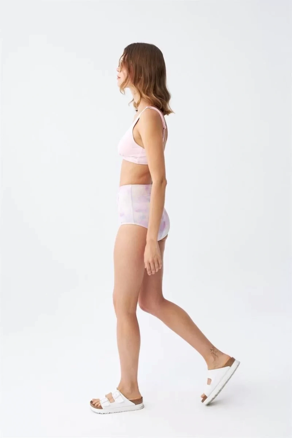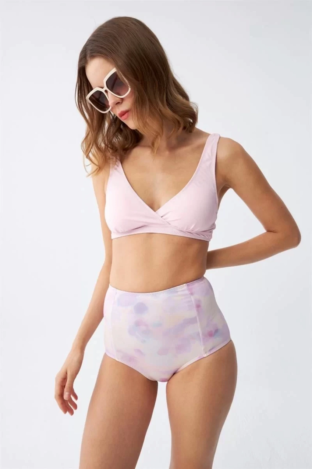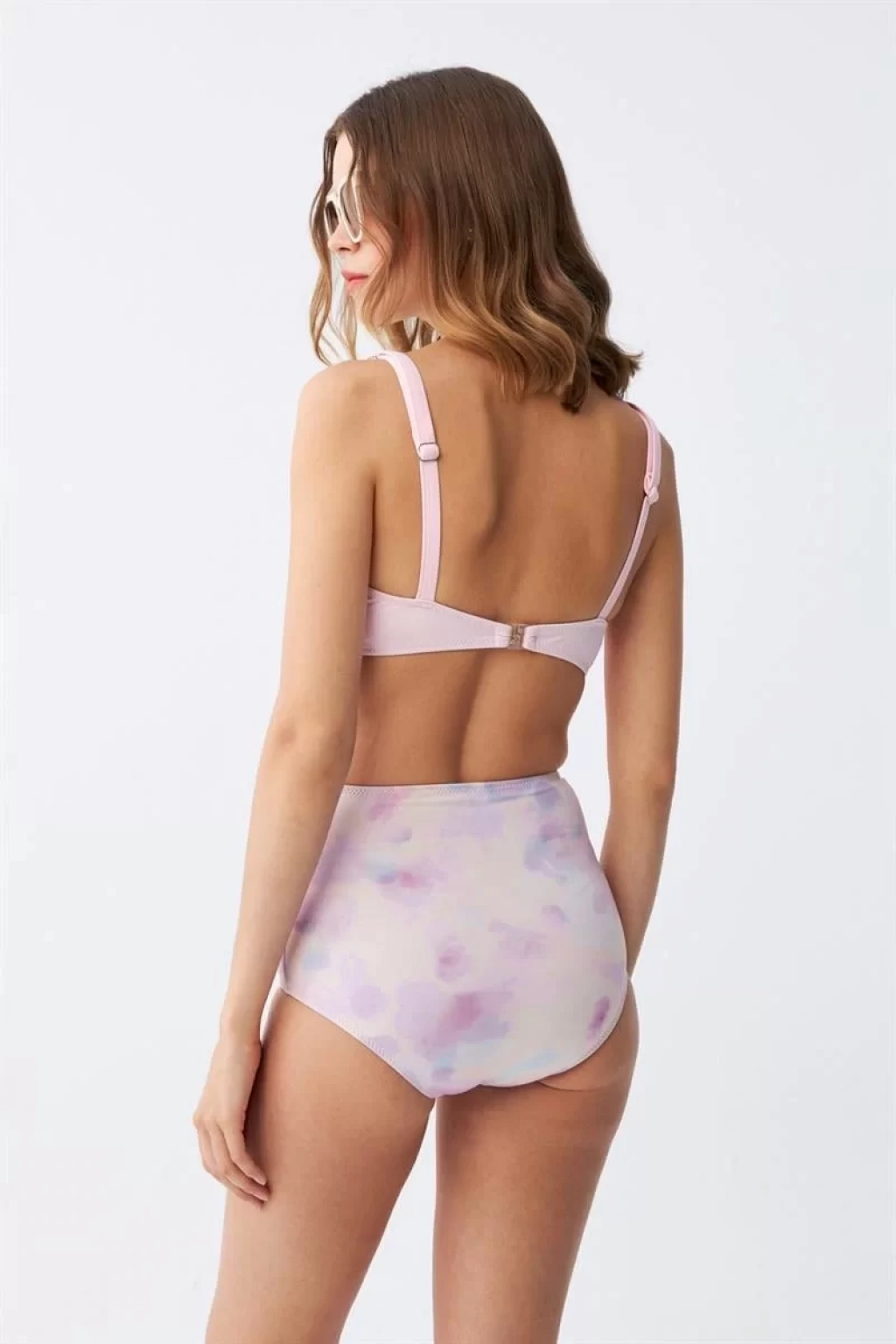 Kadın Pembe Pedli Üst ve Pastel Desenli Yüksek Bel Bikini Takımı ile plaj şıklığınızı tamamlayarak, güneşin keyfini çıkarabilirsiniz.