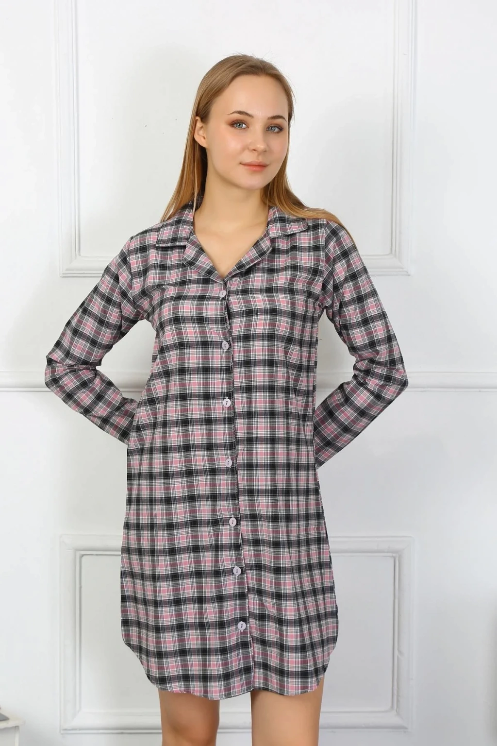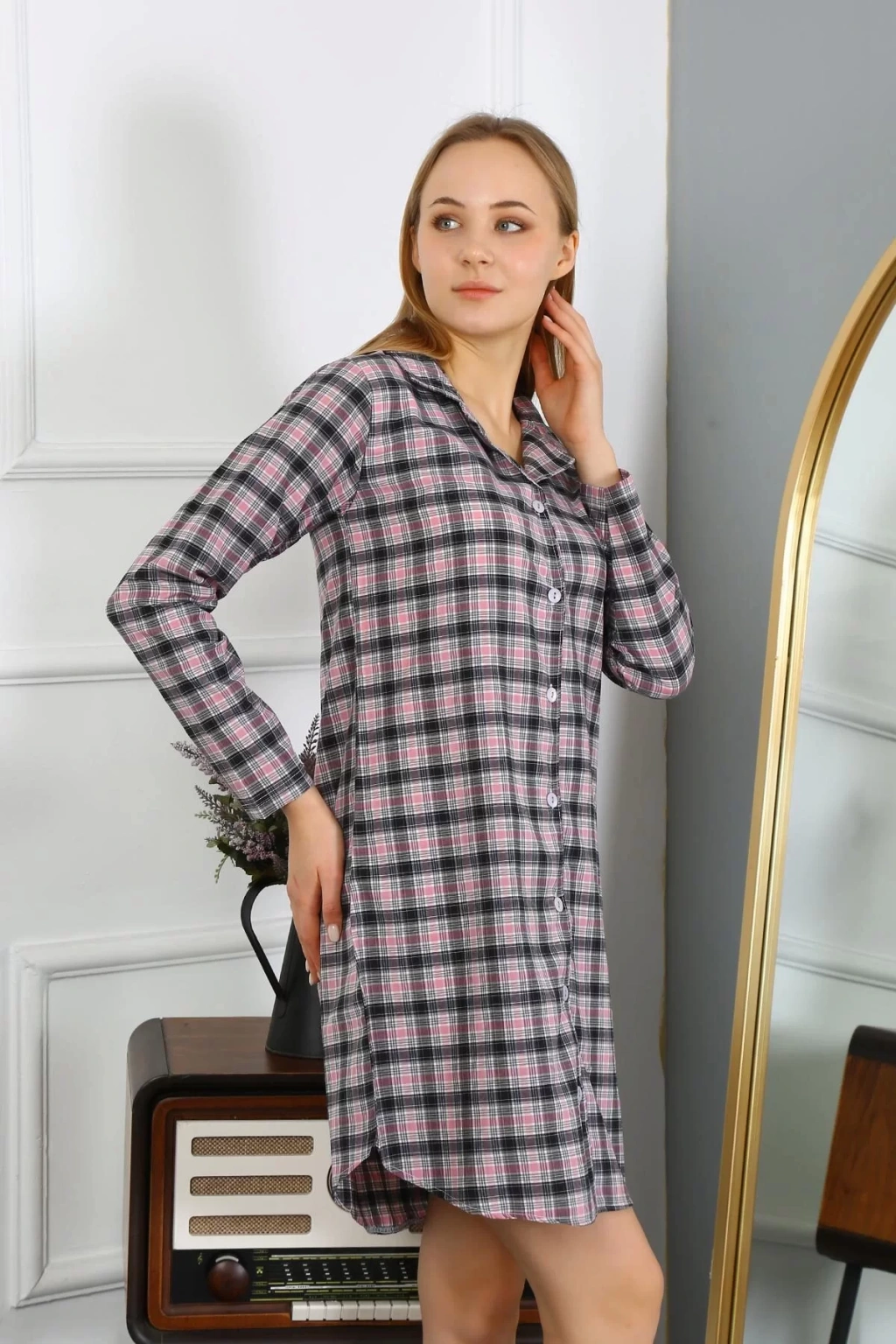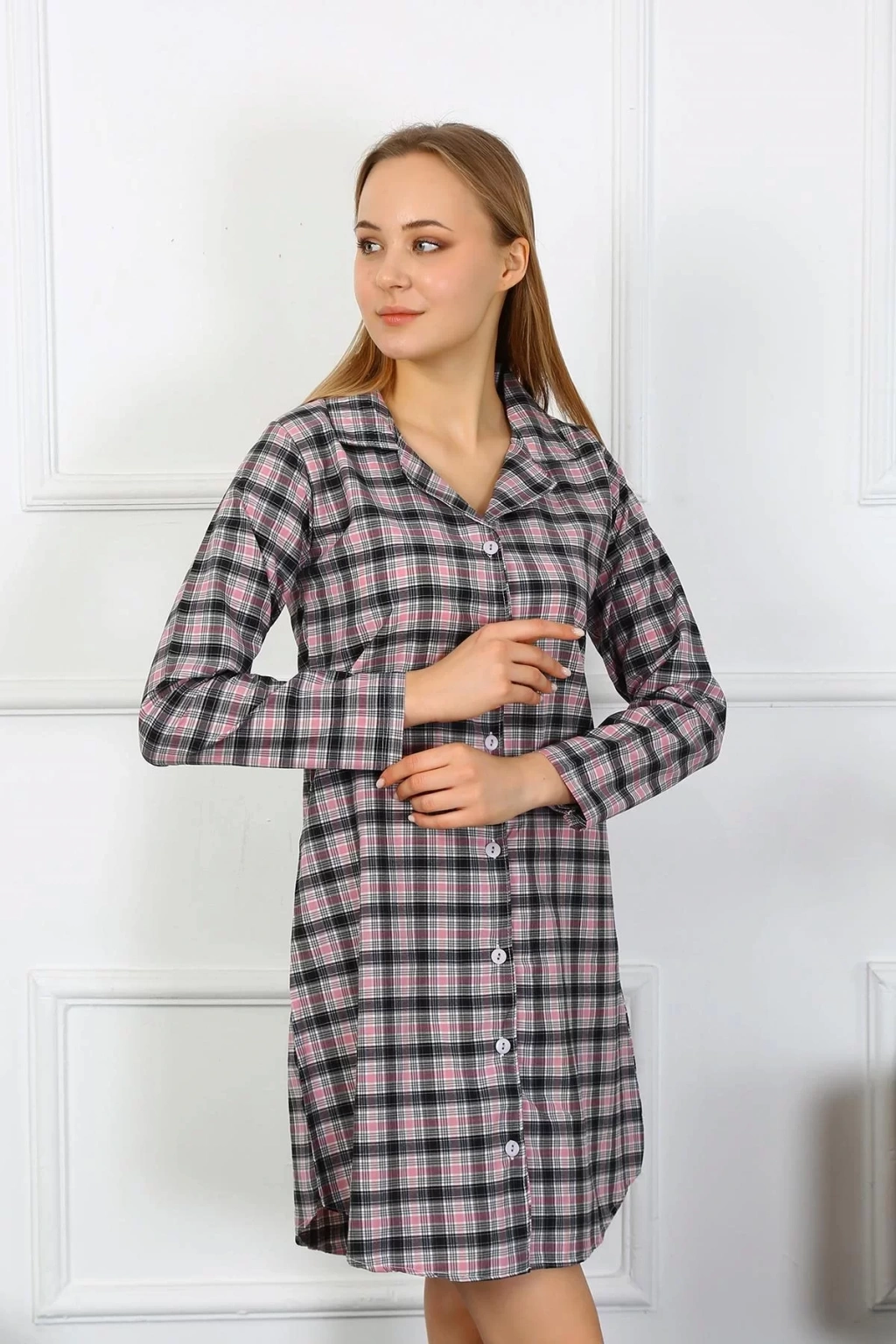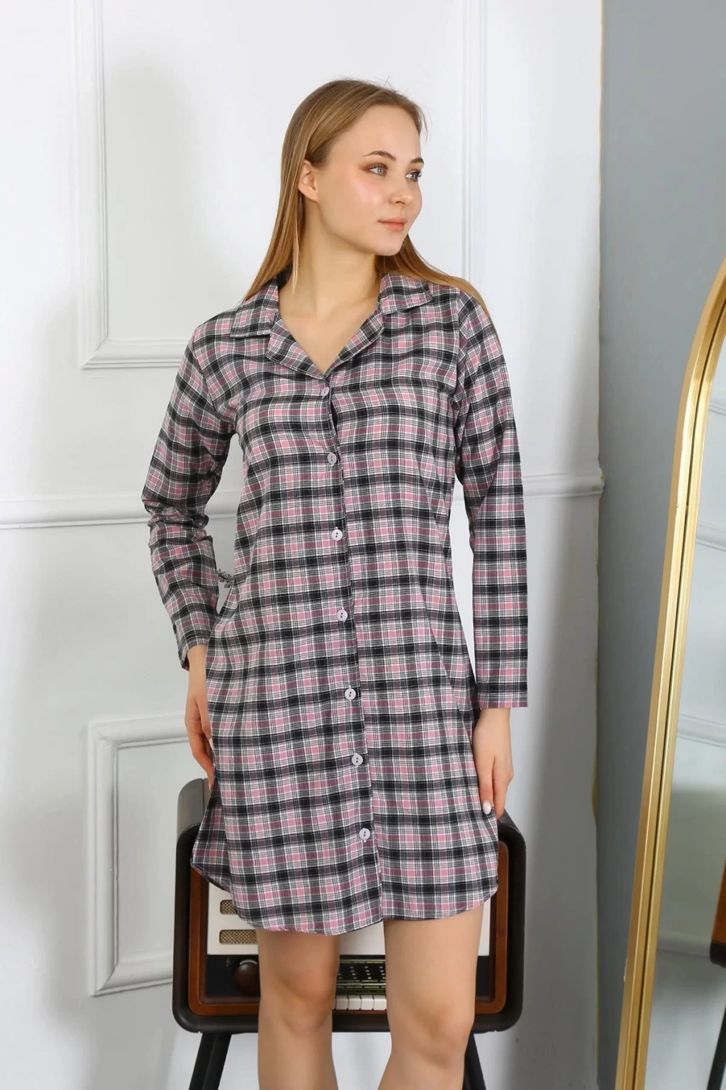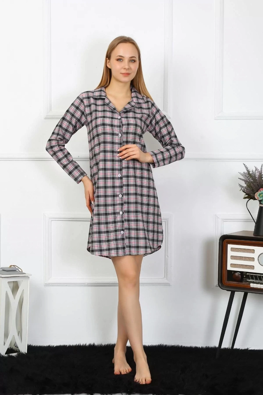 Çamaşır Kenti Kadın Penye Uzun Kol Düğmeli Siyah Tunik Gecelik