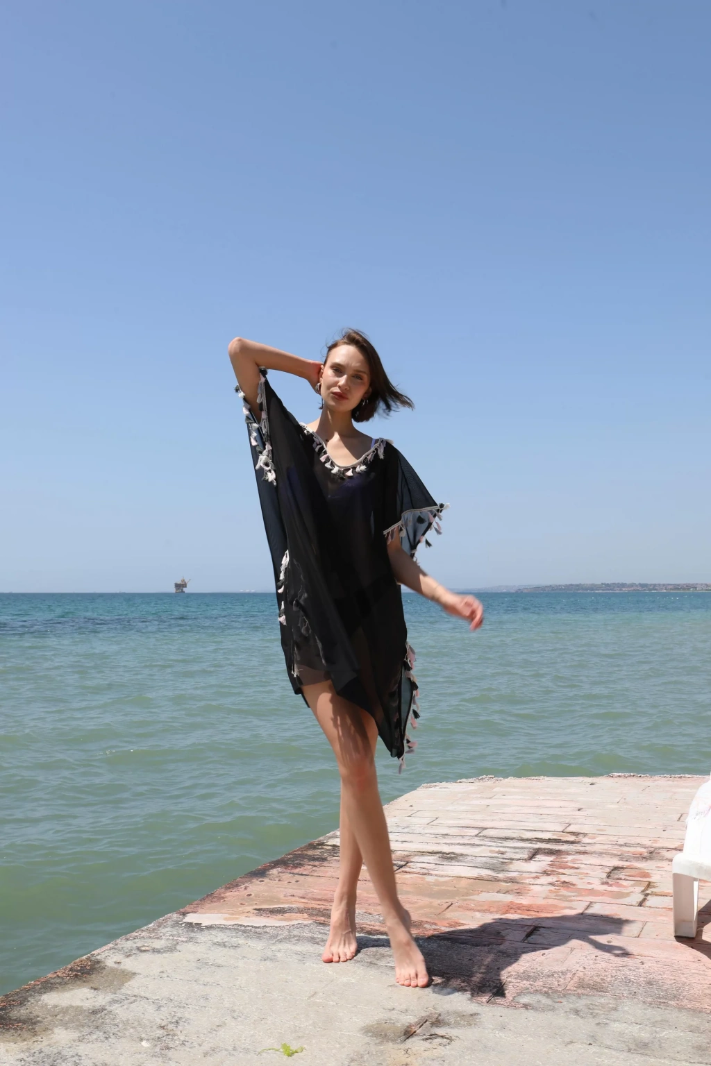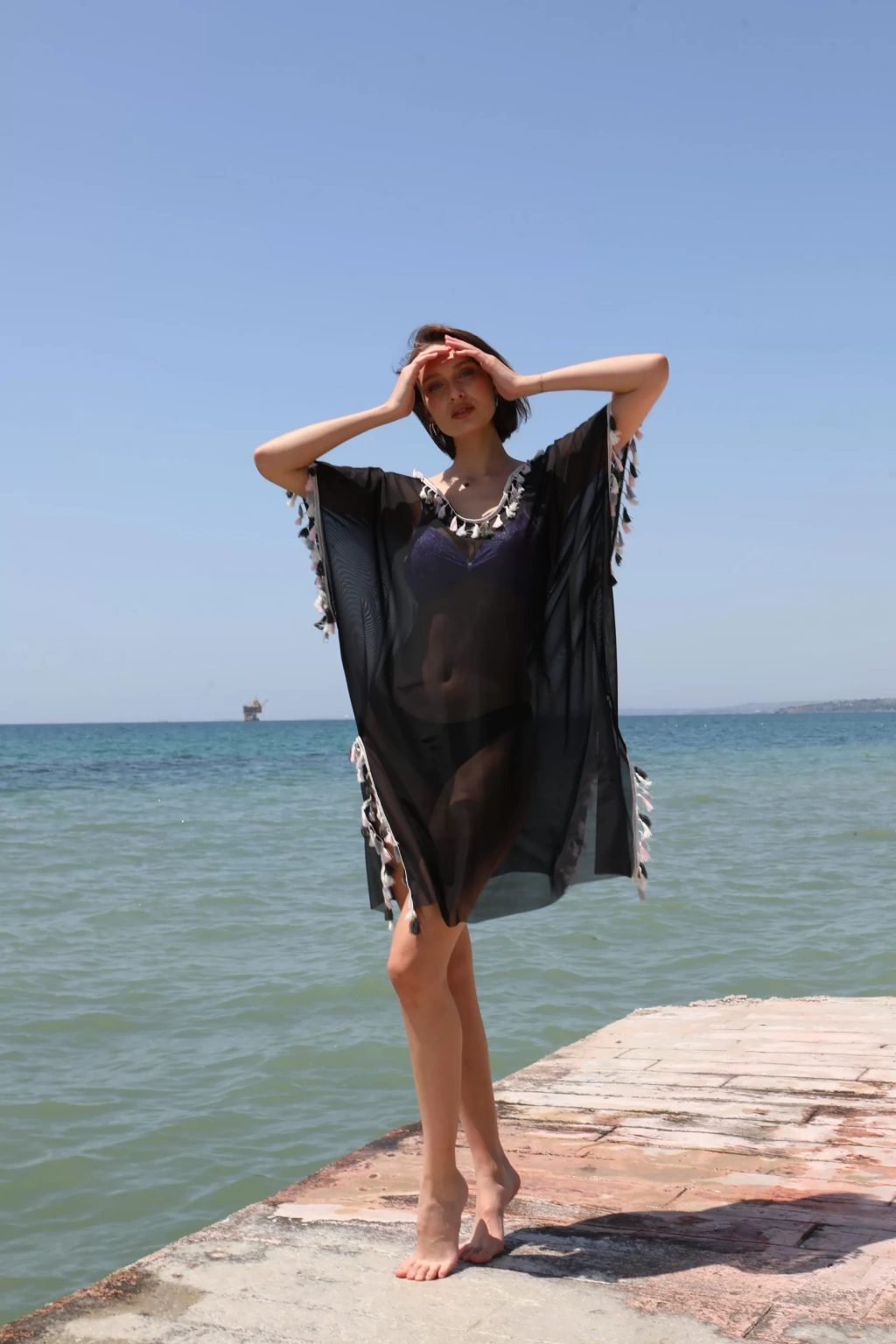 Şık Tasarım: Püskül detayları ve modern kesimiyle plajda veya havuz kenarında göz kamaştıracaksınız. Siyahın zarafeti ile plaj stilinizi tamamlayın.