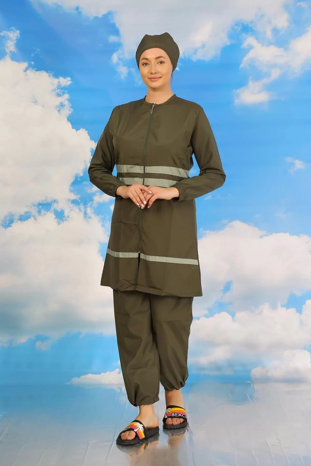 Çamaşır Kenti markasının özel tasarımı olan Kadın Tam Tesettür Mayo Haki ile plajda şıklık ve rahatlığı bir arada yaşayacaksınız.