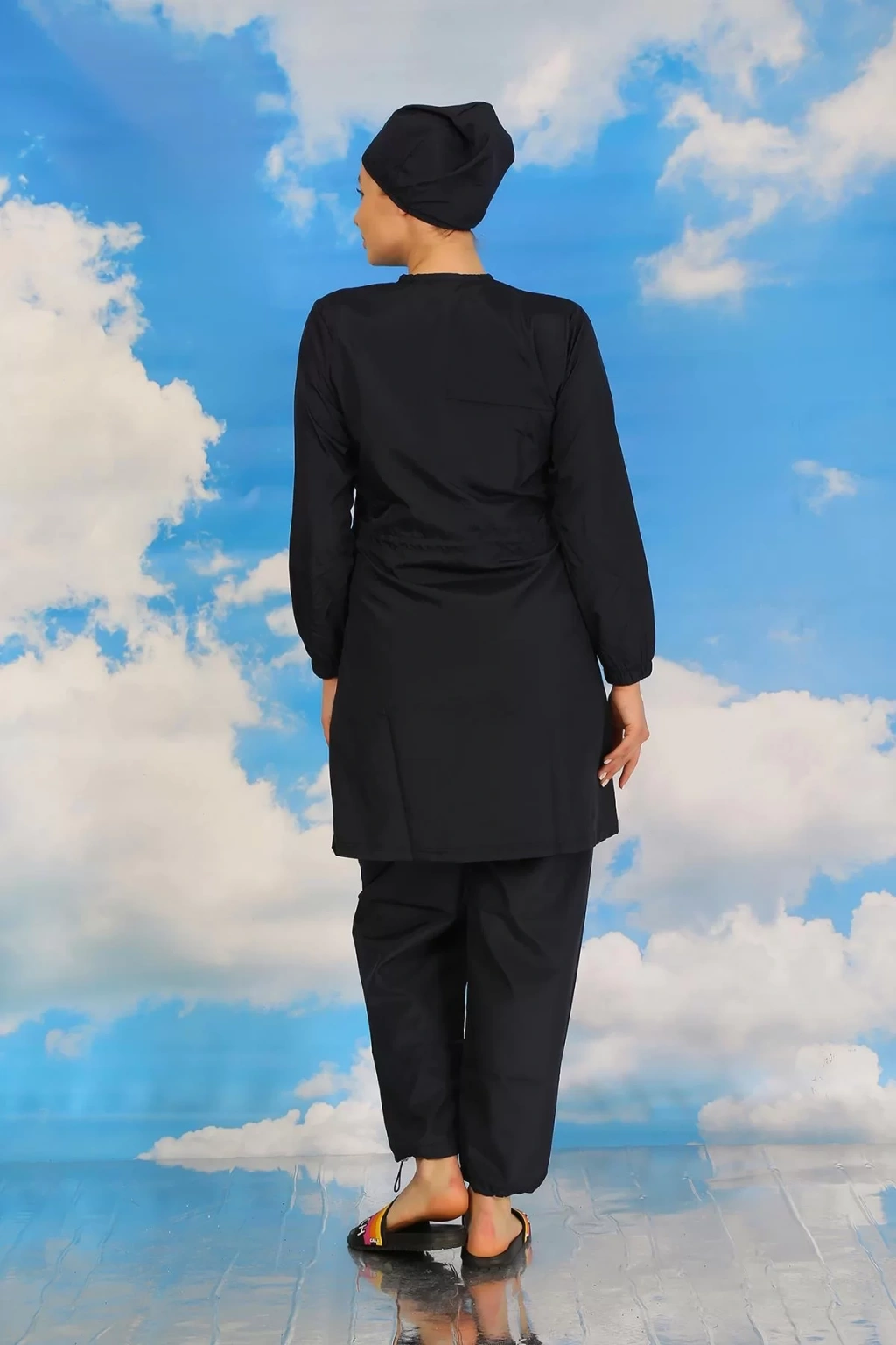 Çamaşır Kenti markasının özel tasarımı olan Kadın Tam Tesettür Mayo Lacivert ile plajda şıklık ve rahatlığı bir arada yaşayacaksınız.