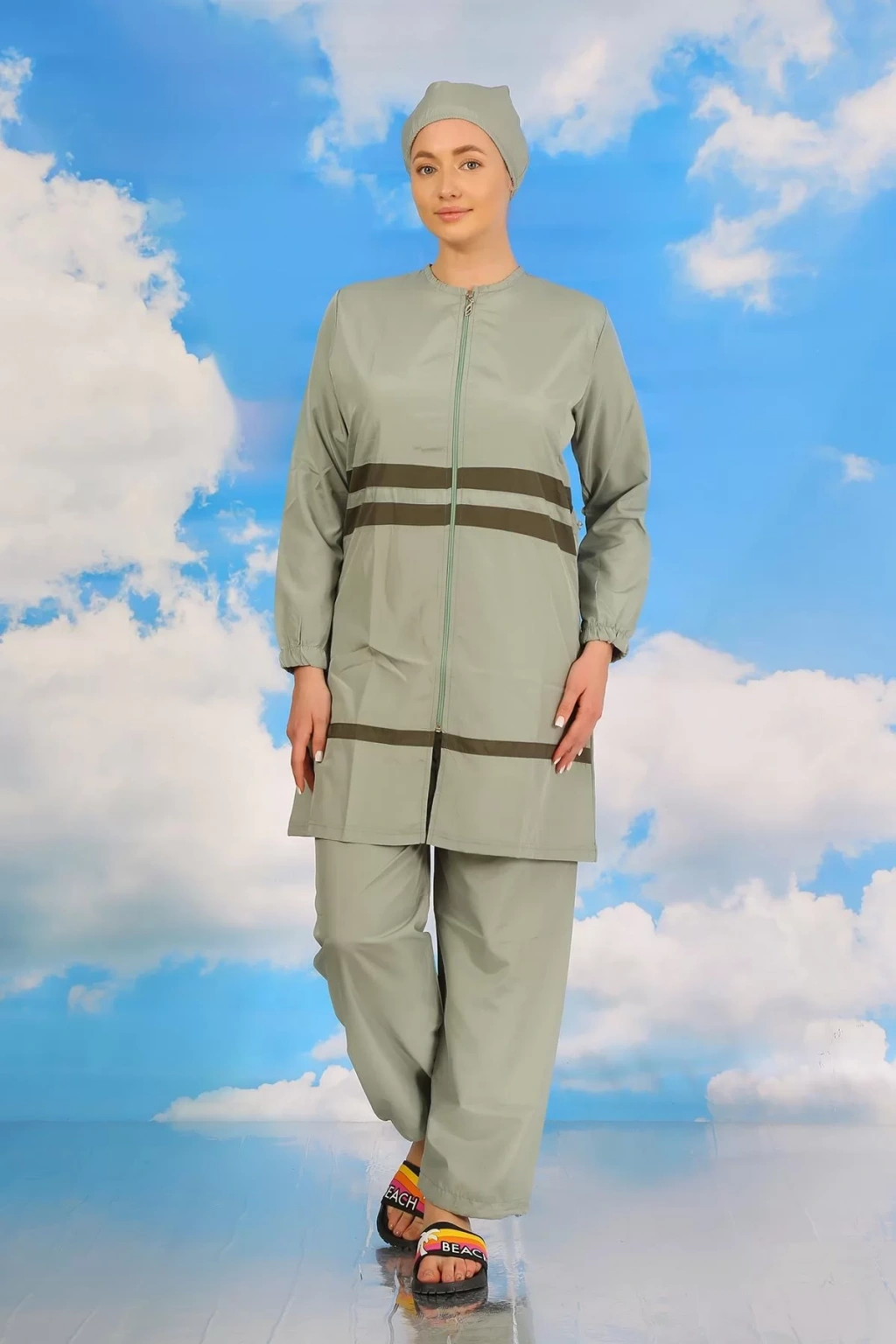 Çamaşır Kenti markasının özel tasarımı olan Kadın Tam Tesettür Mayo Su Yeşili ile plajda şıklık ve rahatlığı bir arada yaşayacaksınız.