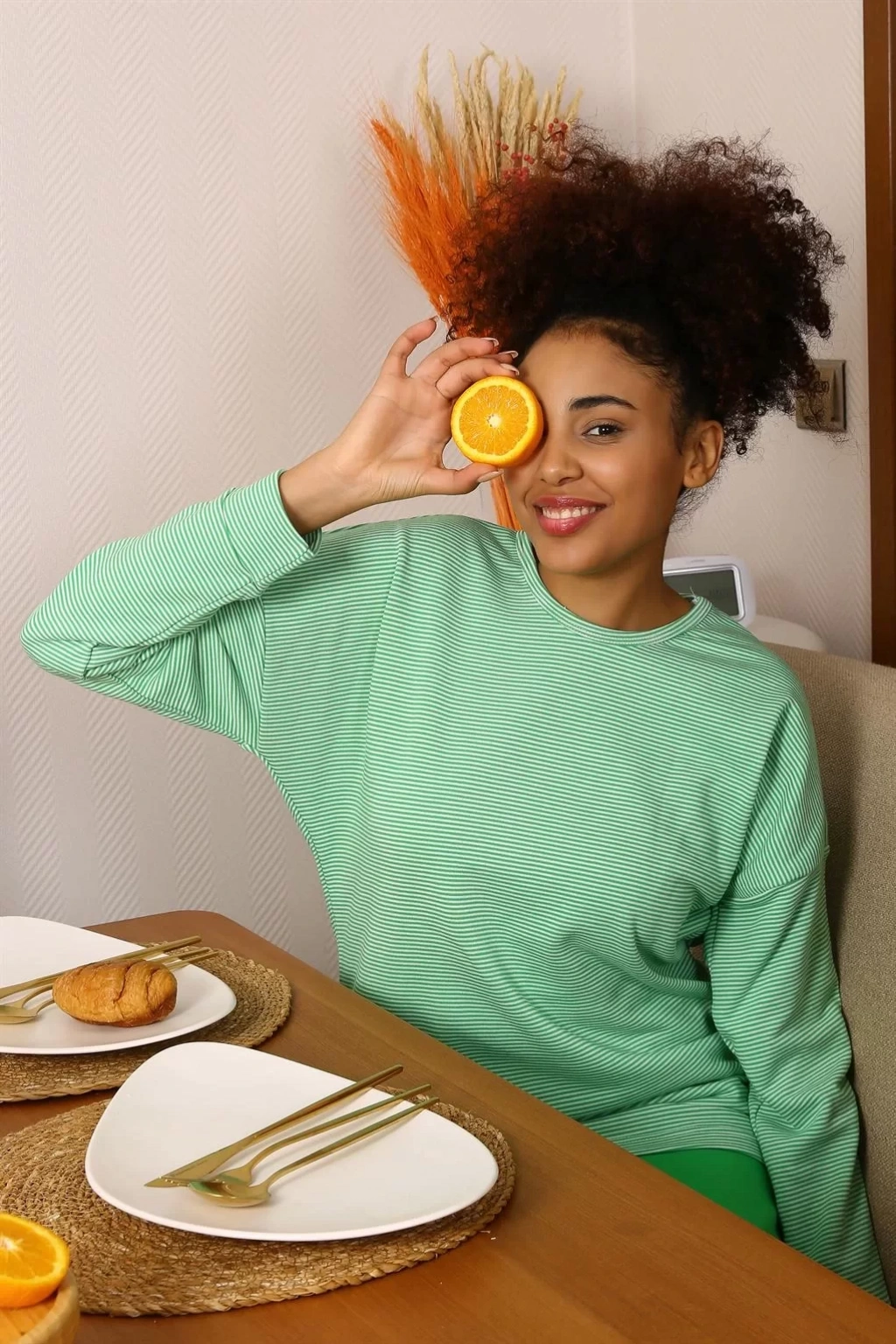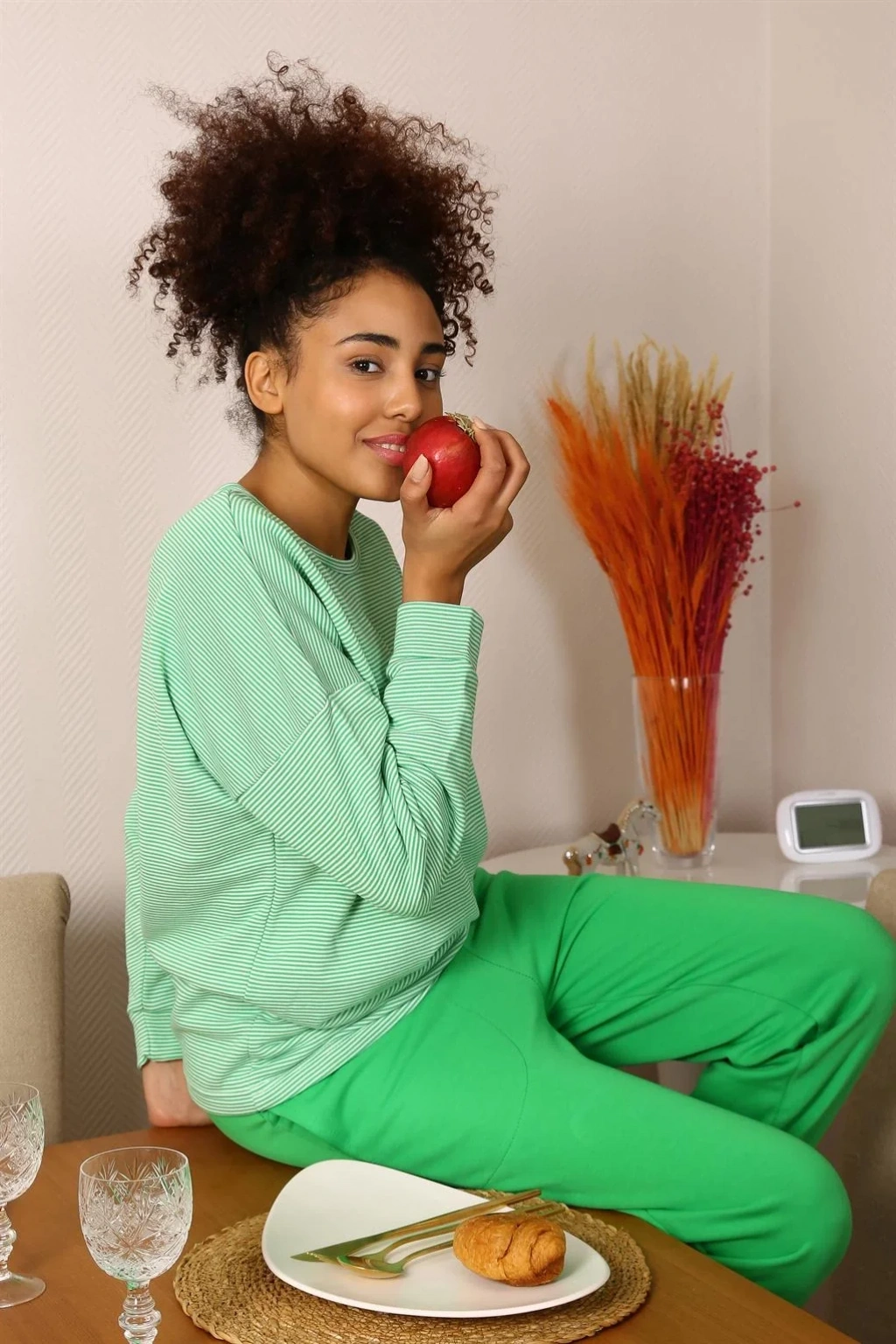Çamaşır Kenti'nin kadınlar için özel olarak tasarladığı Uzun Kol 3 İplik Penye Pijama Takımı Yeşil, rahat ve şık bir seçenektir.
