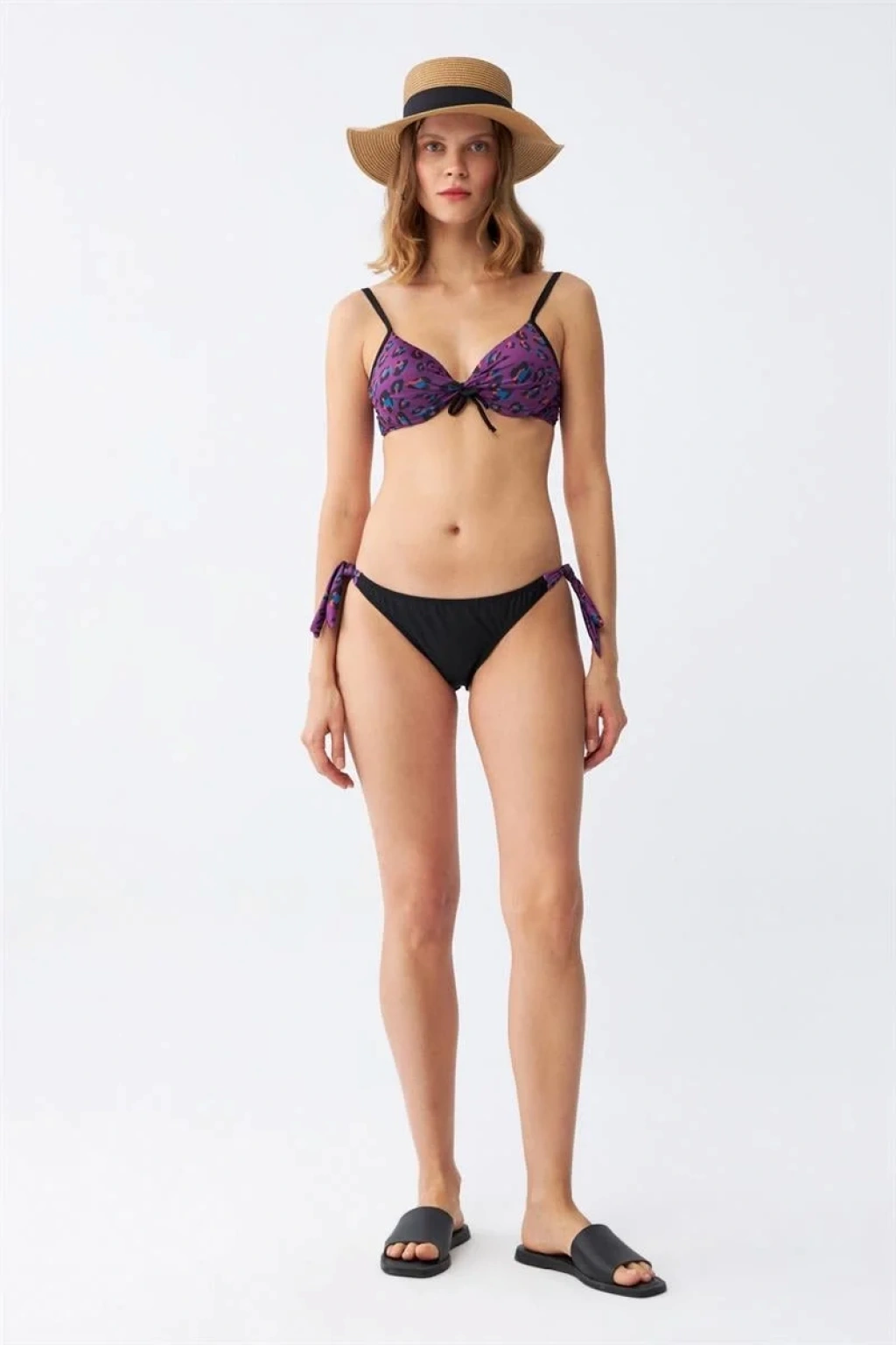 Plajın ve havuzun keyfini çıkarırken tarzınızdan ödün vermek istemeyenler için Kadın Yandan Bağlamalı Yarım Destekli Fiyonklu Alt Üst Bikini Takım Mor, ideal bir seçim olacaktır.