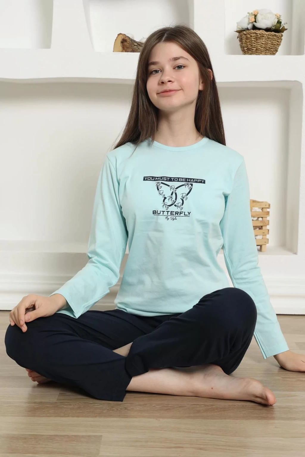 Çamaşır Kenti Kız Çocuk Penye Pijama Takımı Su Yeşili, hem şık hem de konforlu bir seçenektir. İnce penye kumaşıyla yumuşacık bir his sunar.