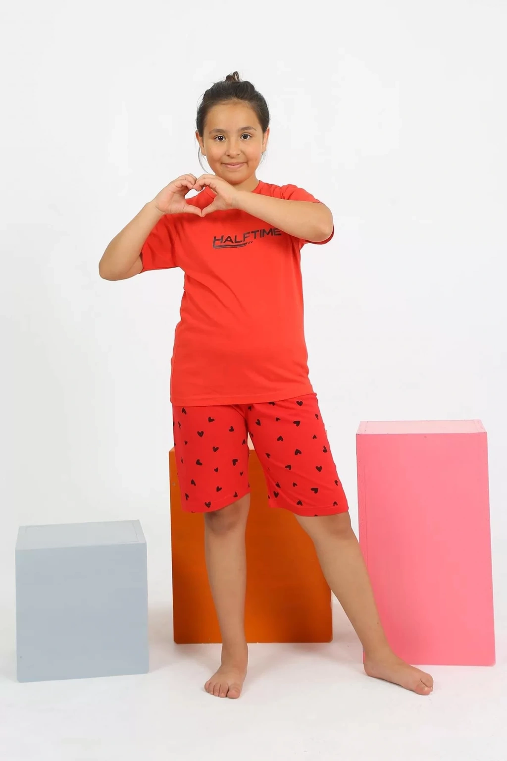 Çamaşır Kenti Kız Çocuk Şortlu Kısa Kol Penye Pijama Takımı, rahatlığı ve şıklığı bir arada sunar.