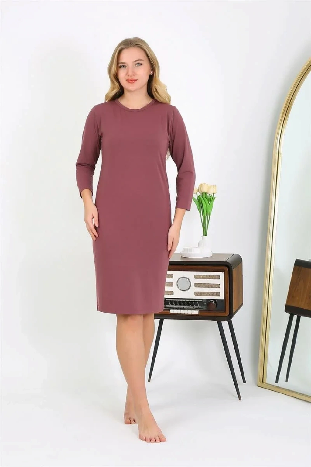 Çamaşır Kenti'nin şık ve rahat tasarımıyla öne çıkan Pamuk Ev Elbisesi Tunik Gecelik Mürdüm, hem gecelerinizde hem de evde keyifli zamanlarınızda size eşlik edecek bir parça.