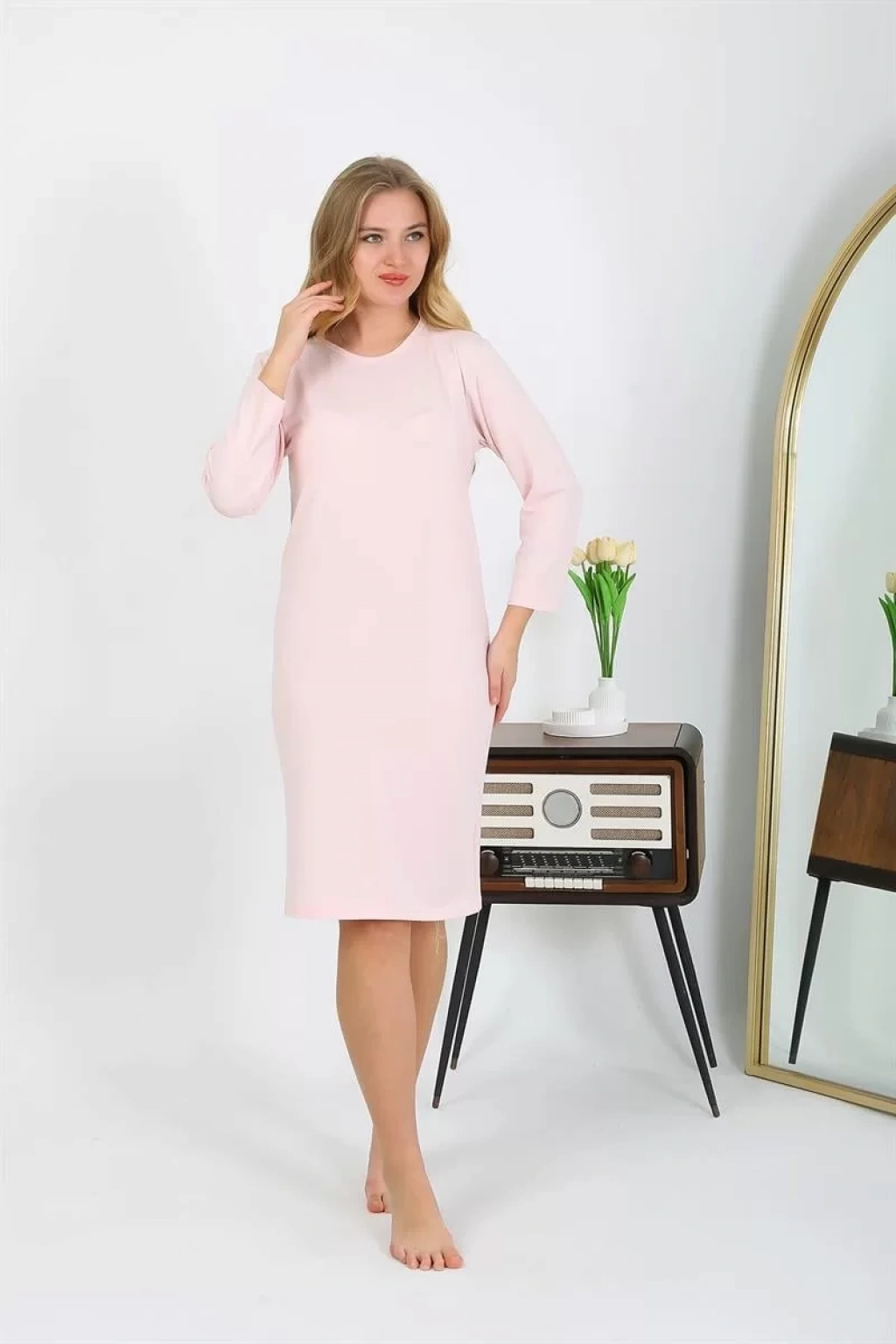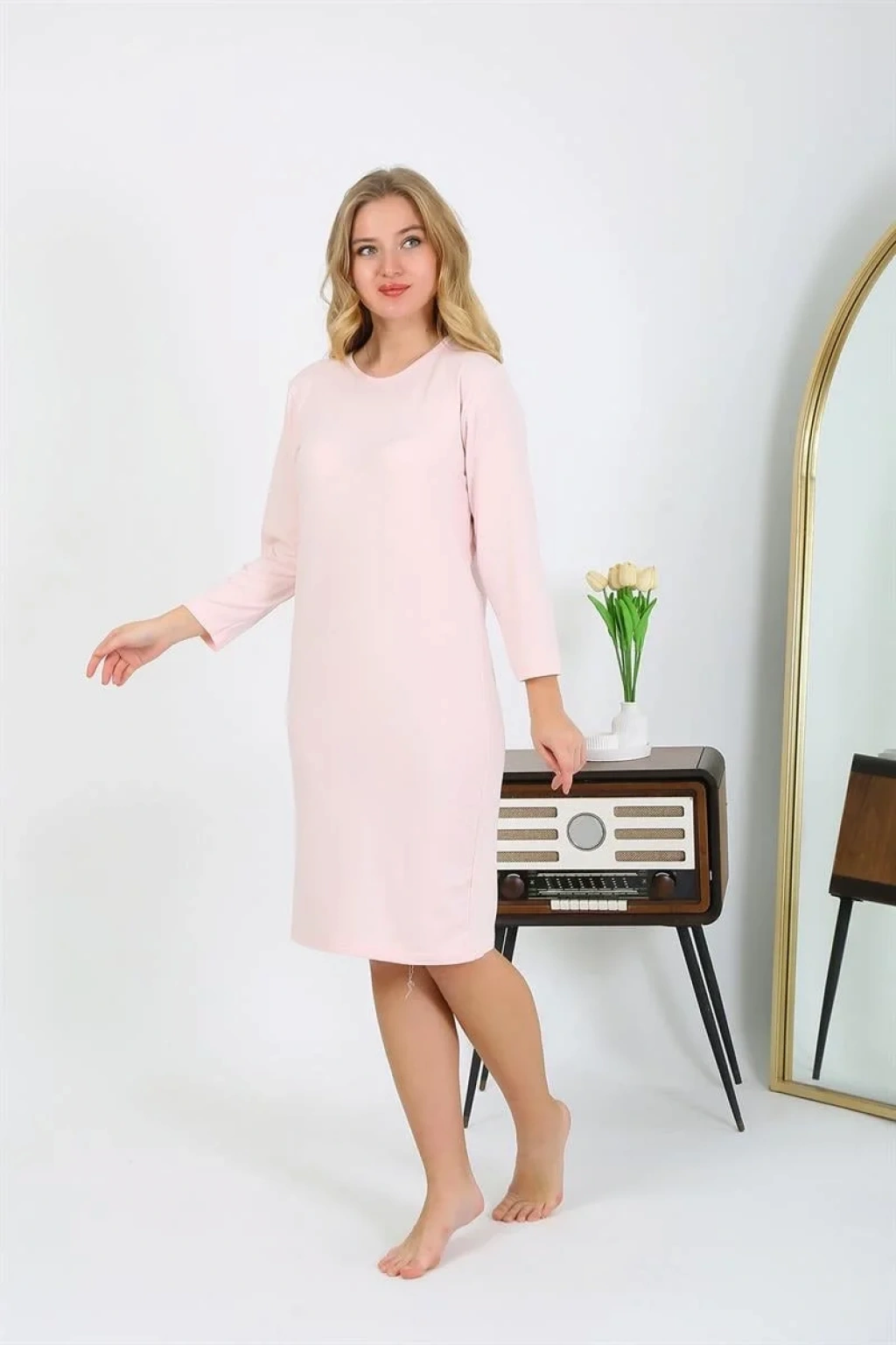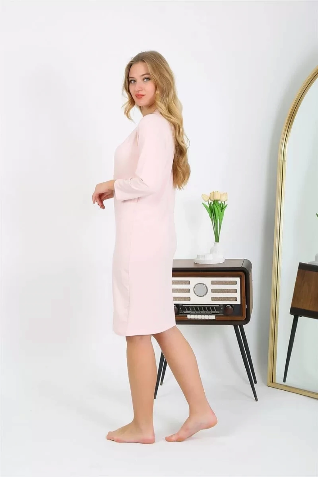 Moda Pamuk Ev Elbisesi Tunik Gecelik Somon