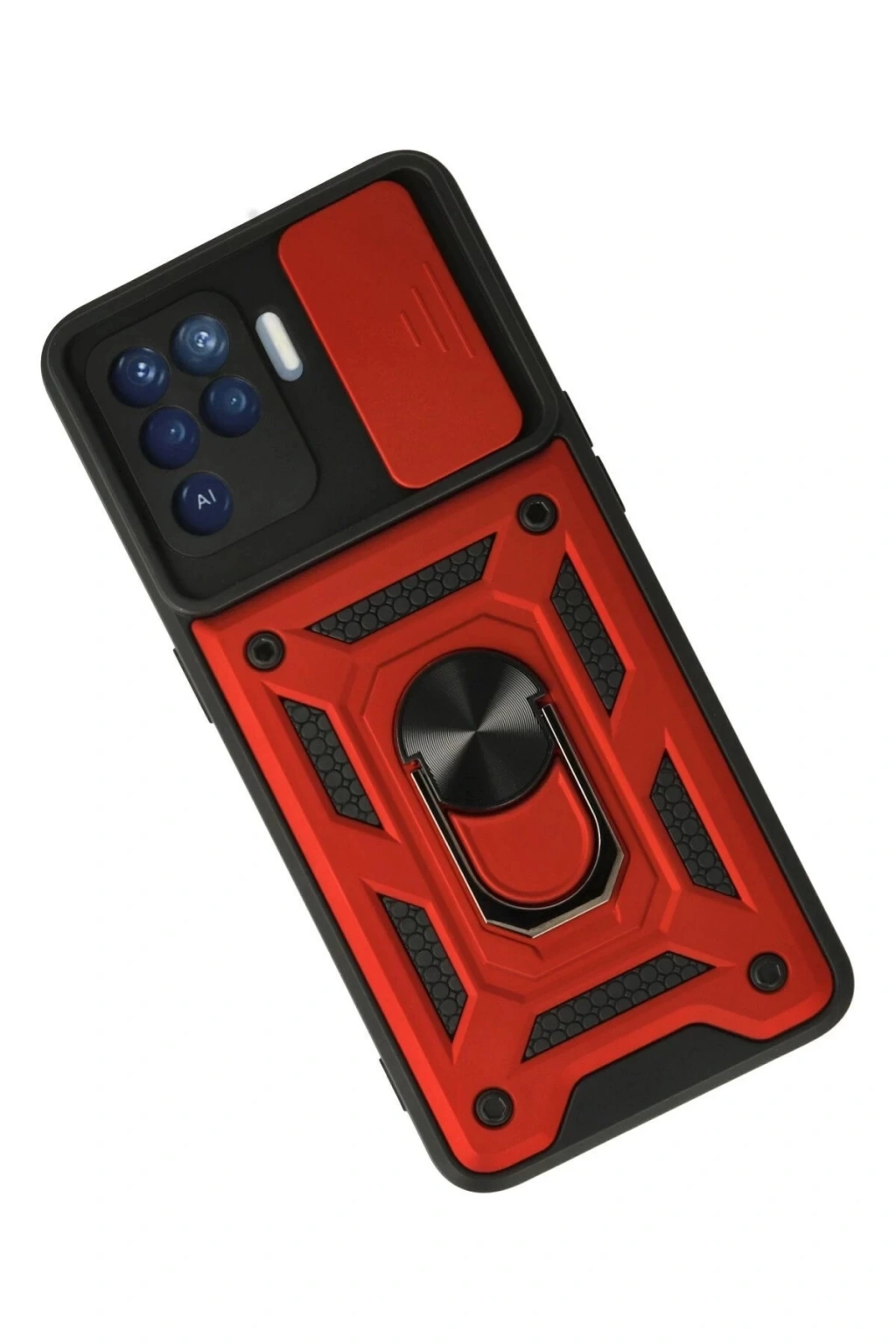 • Oppo Reno 5 Lite Kılıf Pars Lens Yüzüklü Silikon - Kırmızı
