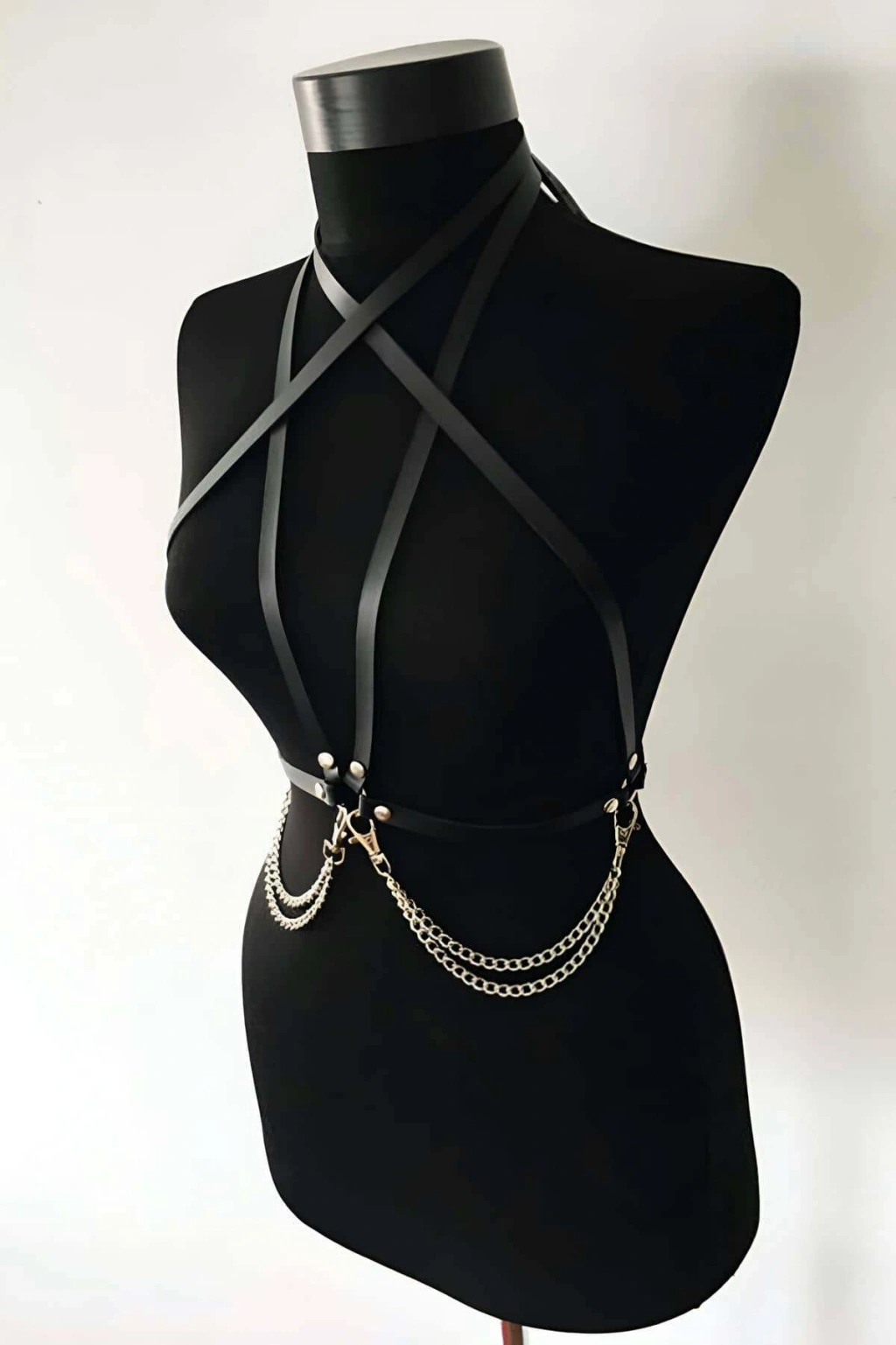 Siyah Göğüs Harness Deri Çapraz Metal Halkalı Beden Aksesuarı - Brf263