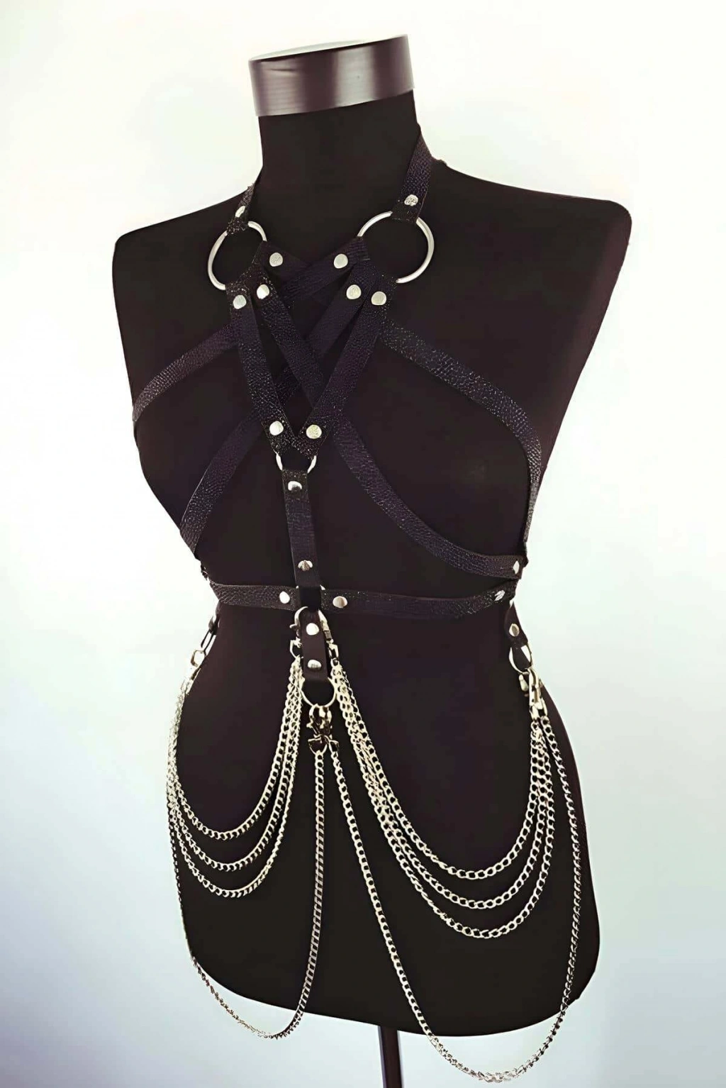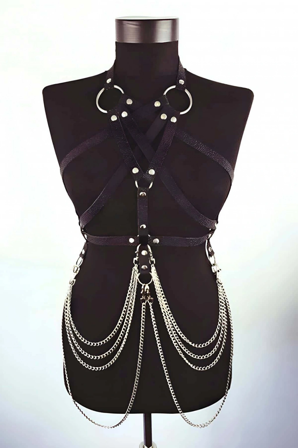 Siyah Göğüs Harness Deri Çapraz Metal Halkalı Beden Aksesuarı - Brf263