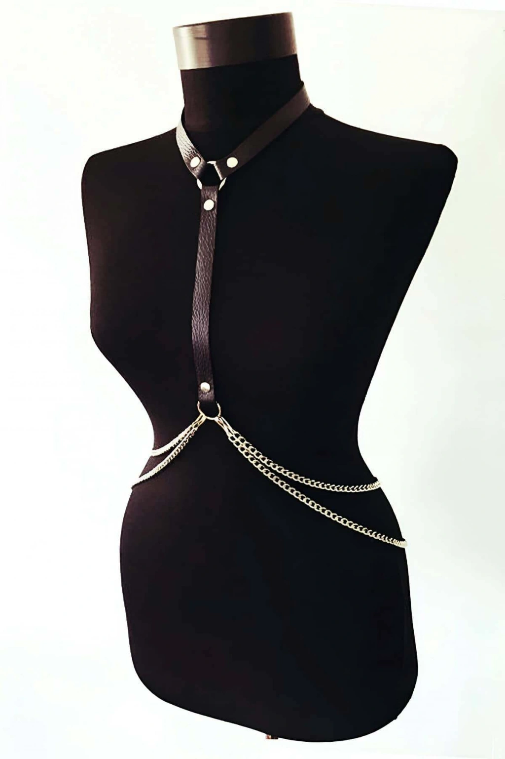 Siyah Göğüs Harness Deri Çapraz Metal Halkalı Beden Aksesuarı - Brf263