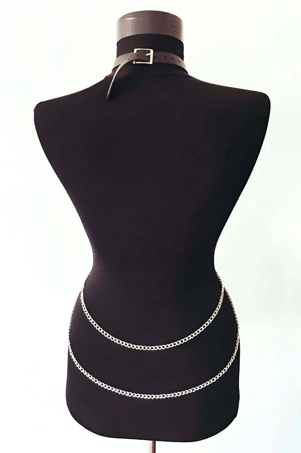 Siyah Harness Takım Zincir Detaylı Bileklik Bağlantılı Deri - Brf270
