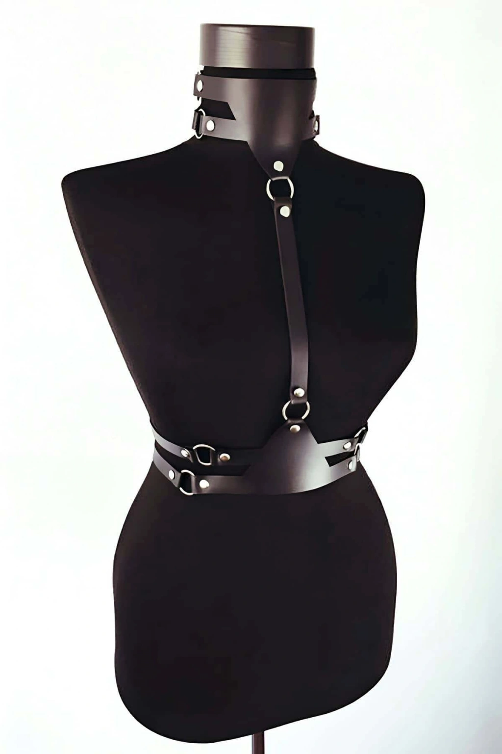 Siyah Göğüs Harness Kadın Suni Deri Metal Halka Detaylı - Brf25