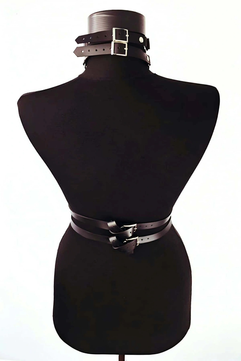 Siyah Kadın Harness Takım Deri Çok Bantlı Tokalı Vücut Seti - Brf272
