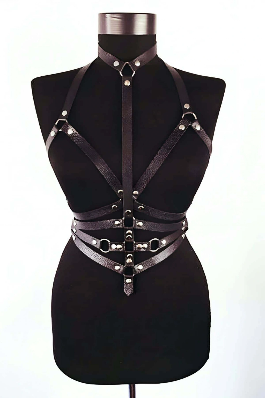 Siyah Göğüs Harness Deri Çapraz Metal Halkalı Beden Aksesuarı - Brf263