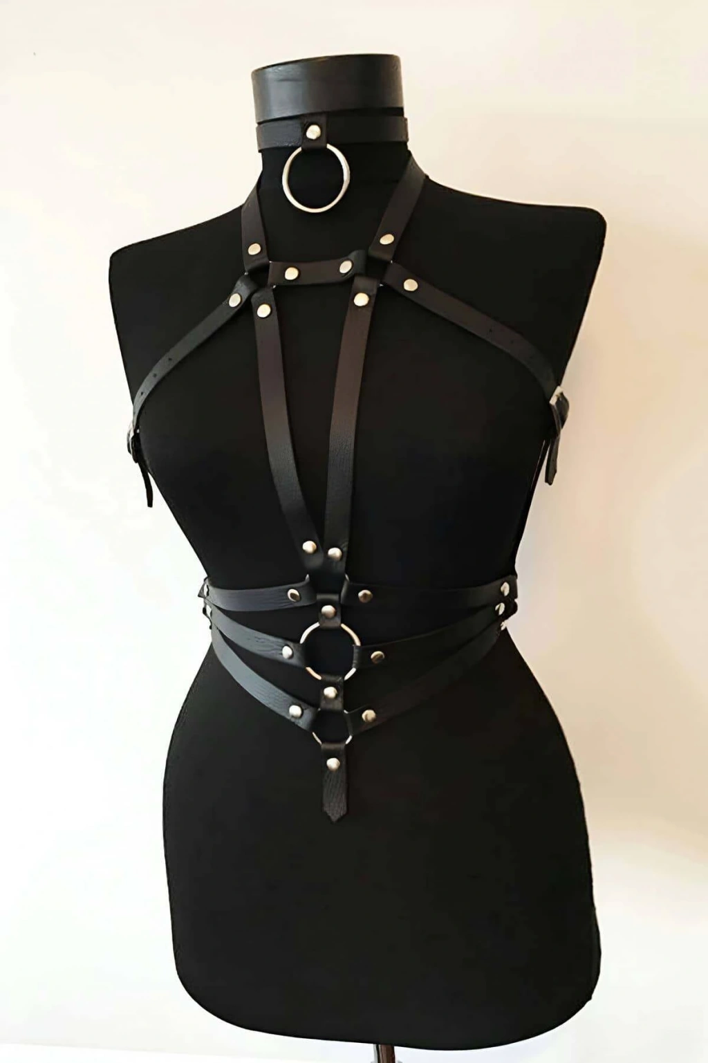 Siyah Göğüs Harness Deri Çapraz Metal Halkalı Beden Aksesuarı - Brf263