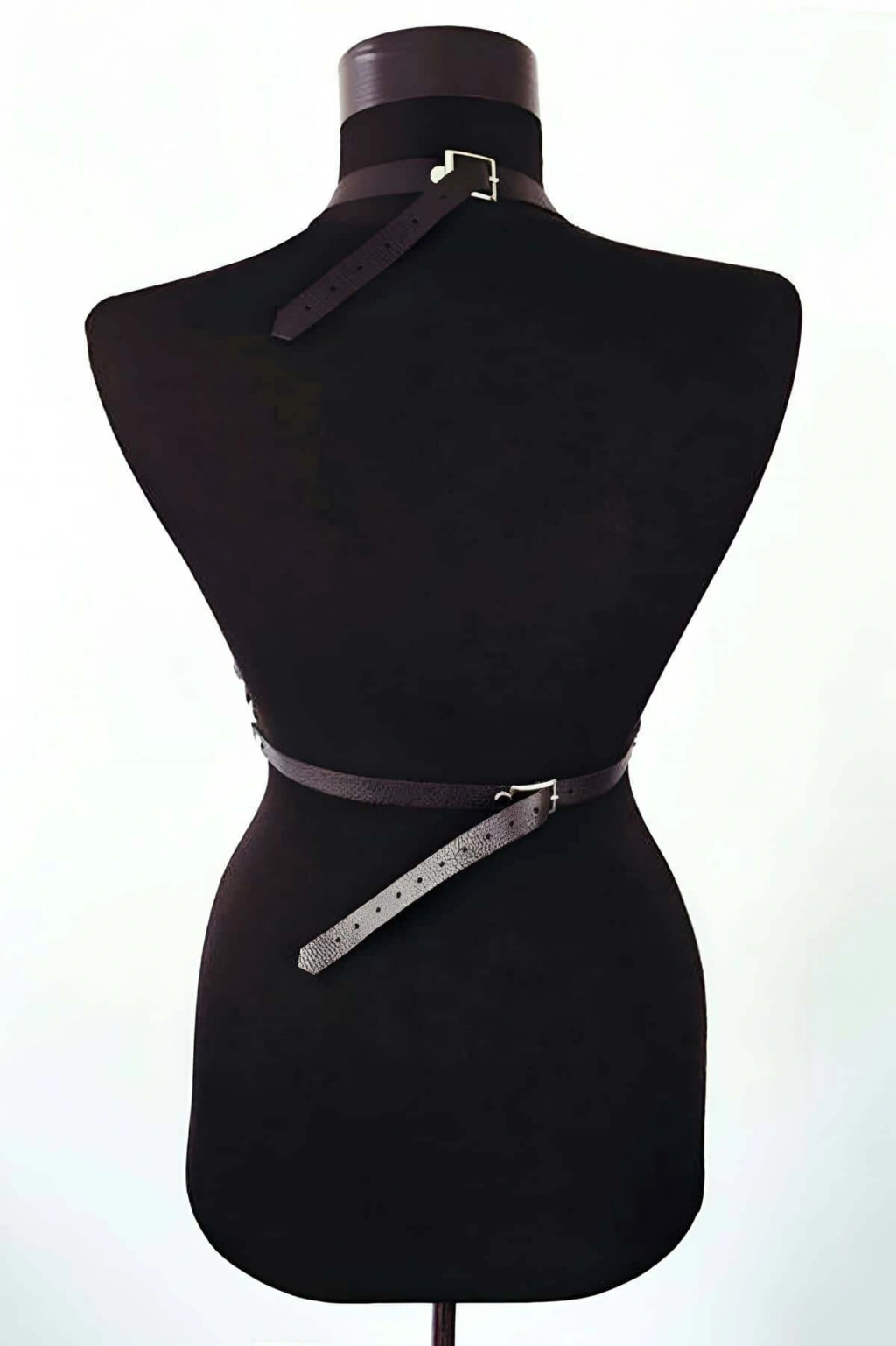 Siyah Göğüs Harness Deri Çapraz Metal Halkalı Beden Aksesuarı - Brf263