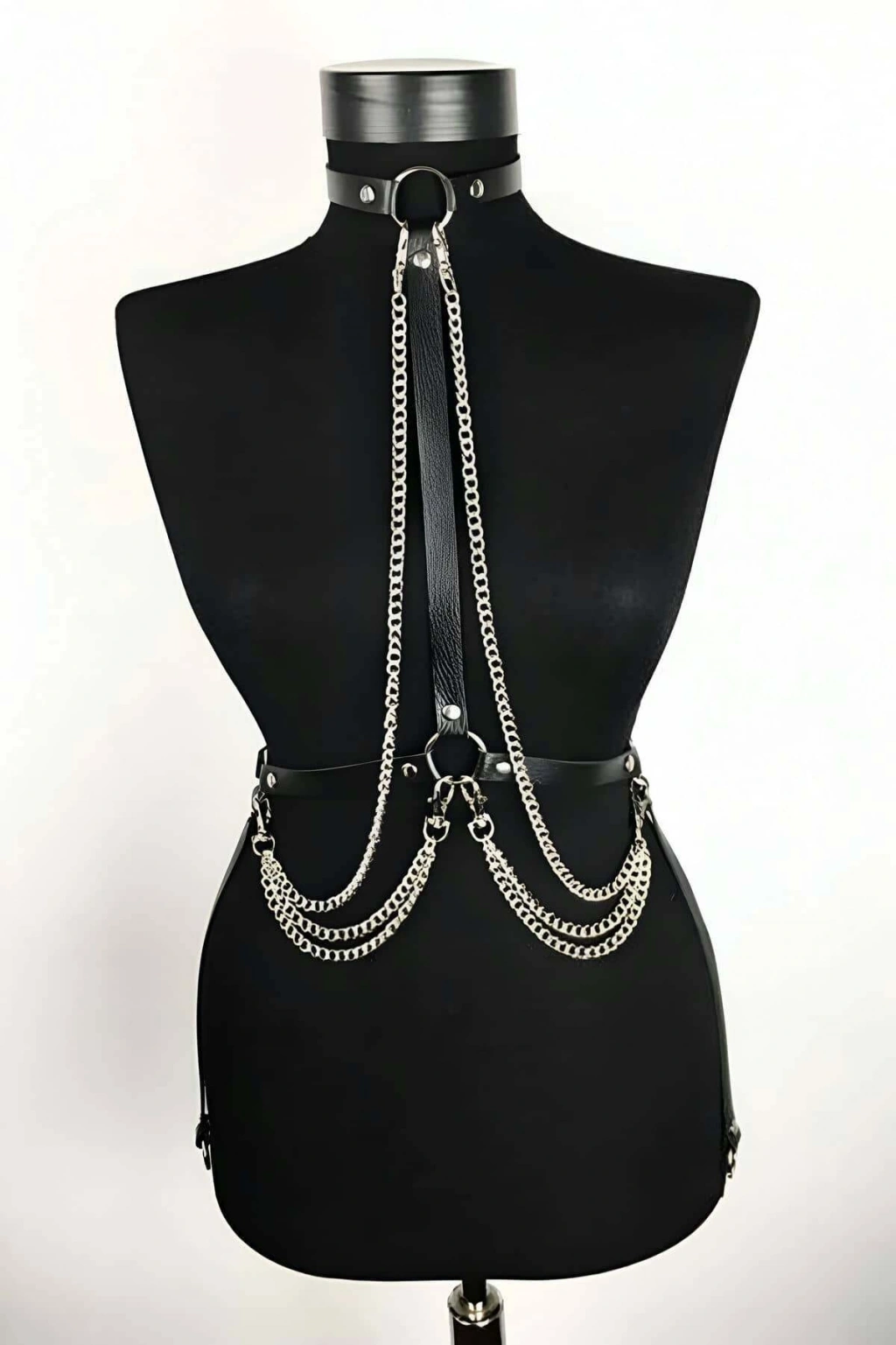 Siyah Göğüs Harness Deri Çapraz Metal Halkalı Beden Aksesuarı - Brf263