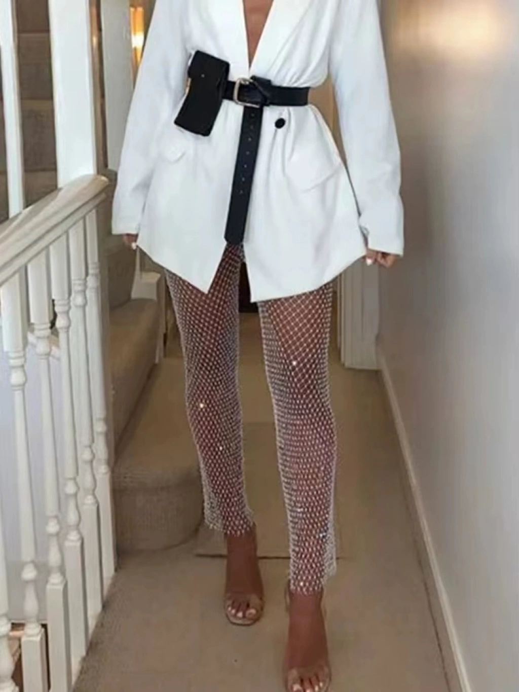 Özel Tasarım Siyah Yıldız Desenli Taşlı Fantezi Body