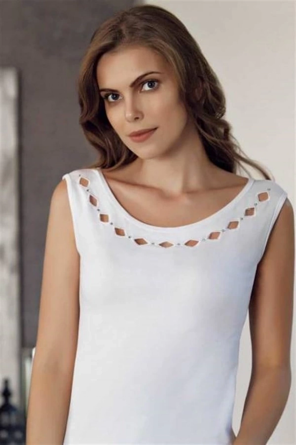 Pamuklu Ribana İşlemeli Geniş Askılı Atlet