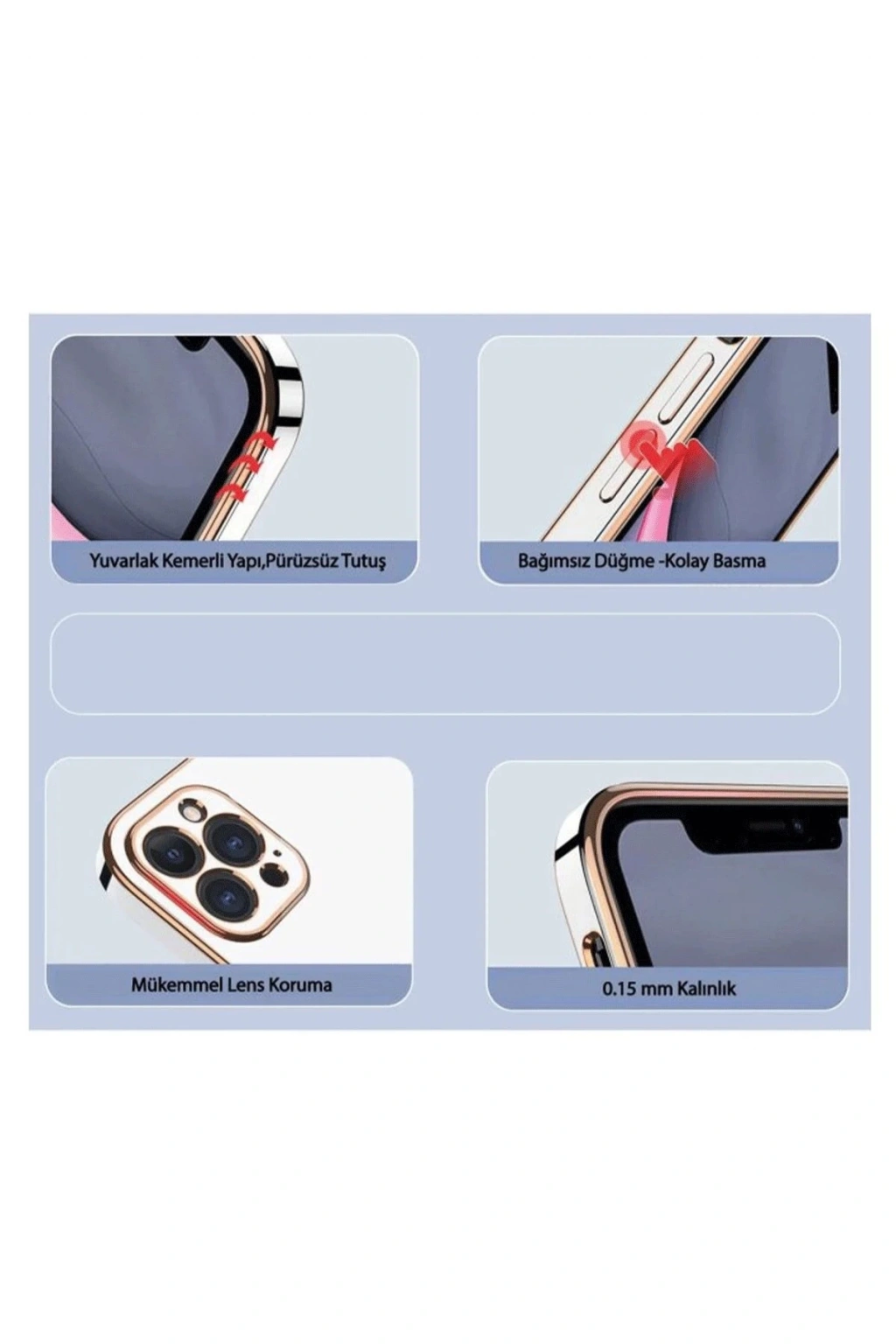 Gold detaylarla zenginleştirilmiş kenar hatları cihazınıza zarif bir dokunuş katar
