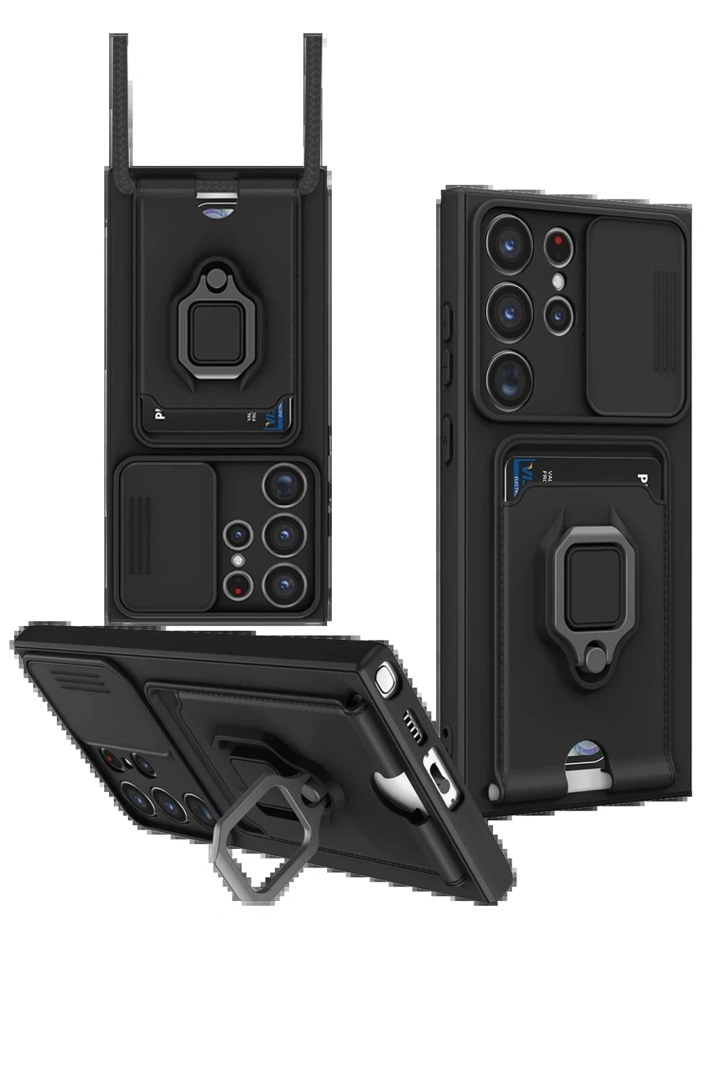 Samsung Galaxy S25 Ultra Kılıf Zuma Kartvizitli Yüzüklü Silikon - Siyah