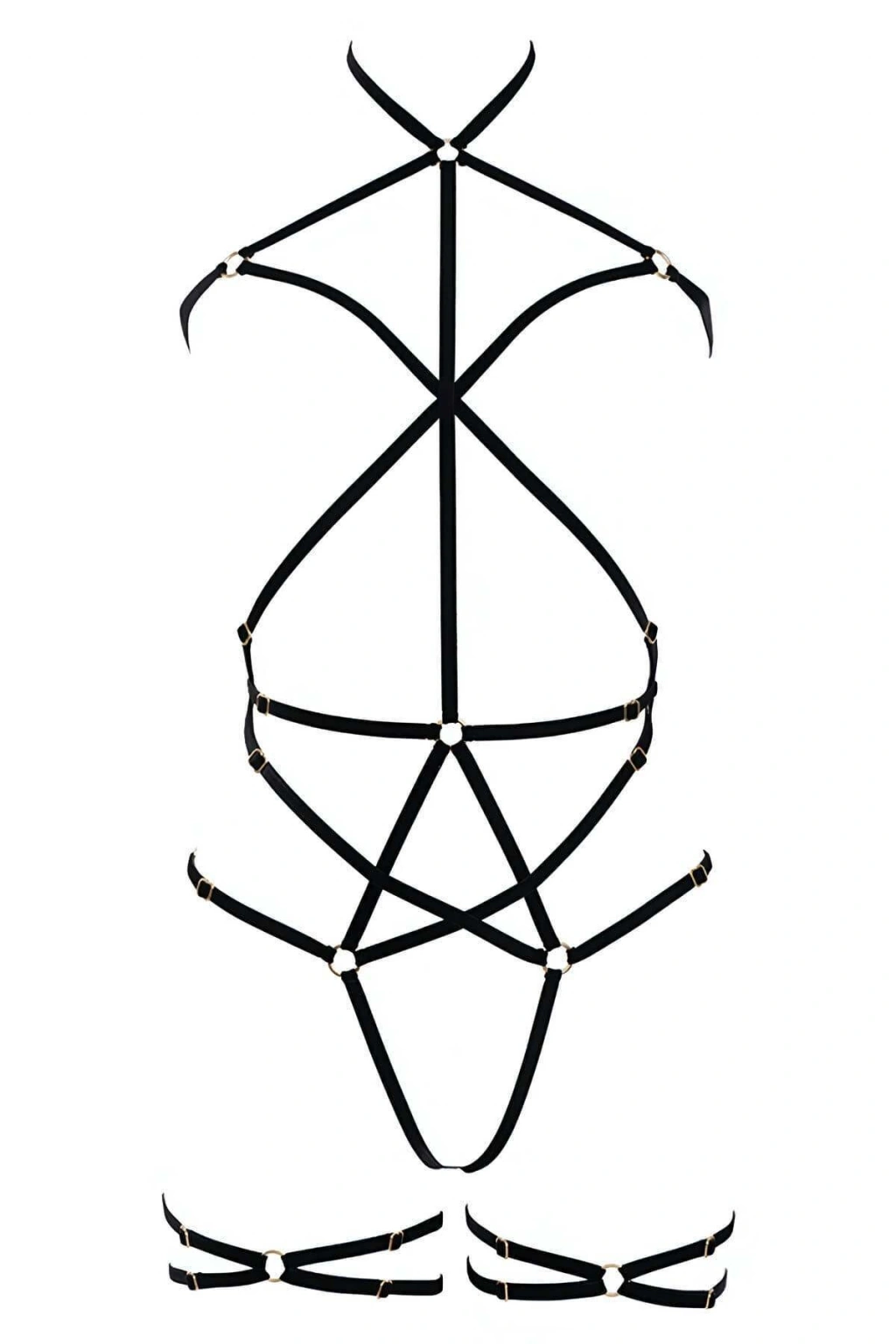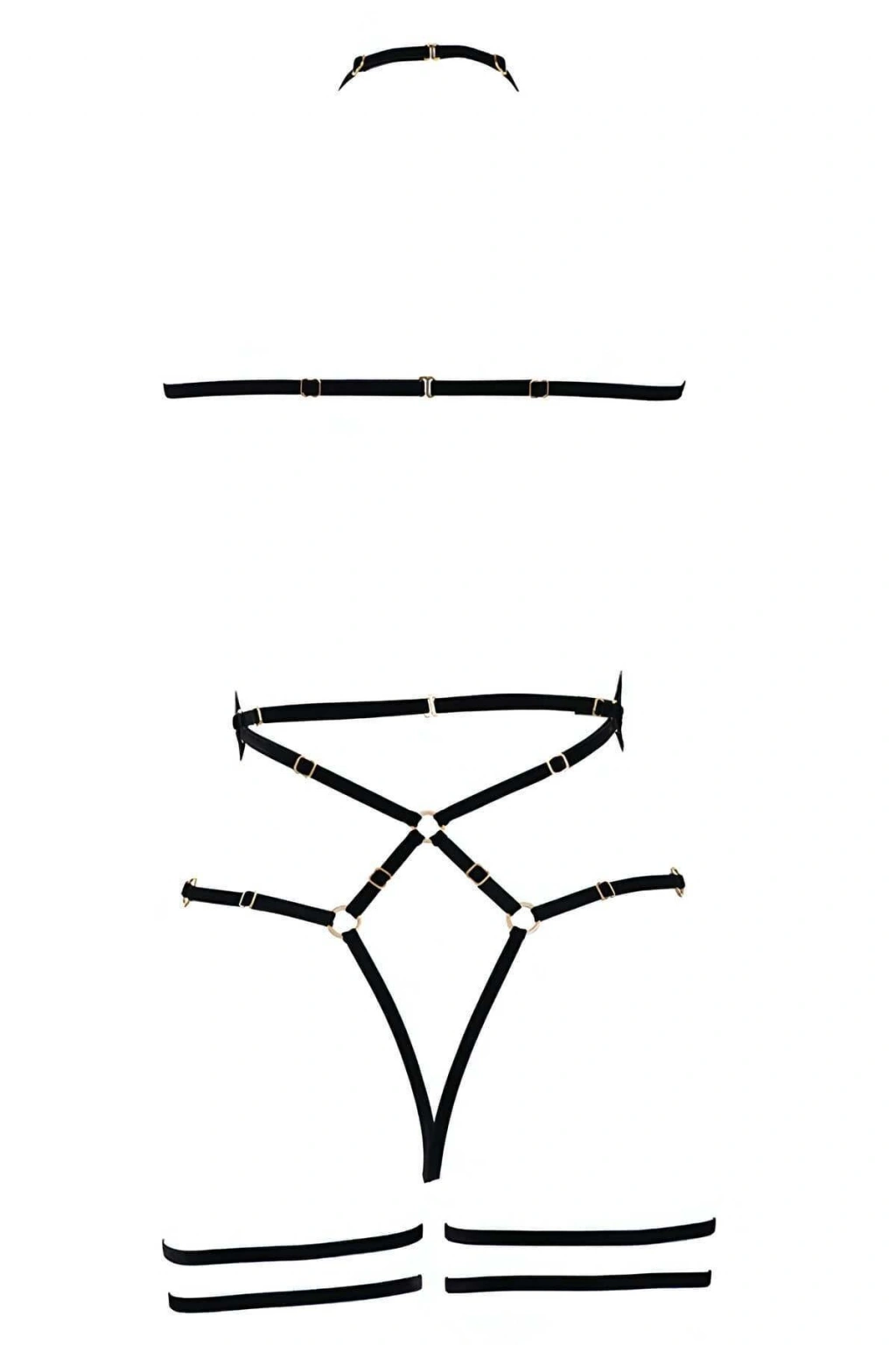 Siyah Body Harness Tam Vücut Boyunluklu Metal Halka Detaylı - Brf262