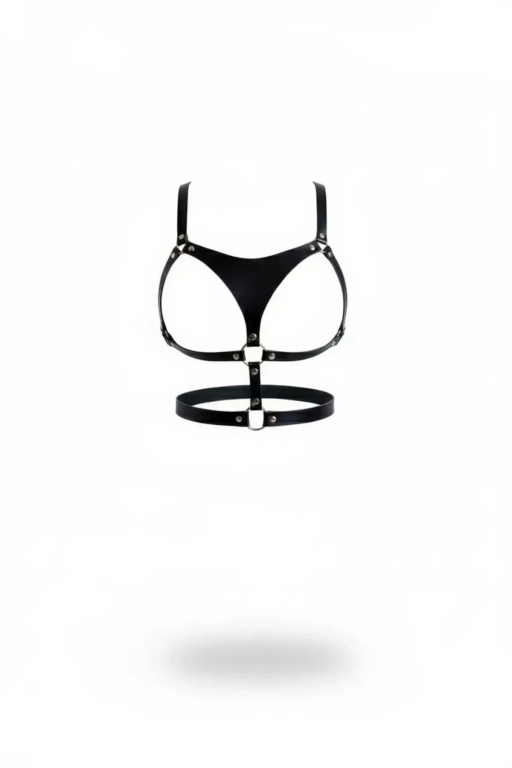 Siyah Göğüs Harness Kadın Suni Deri Metal Halka Detaylı - Brf25