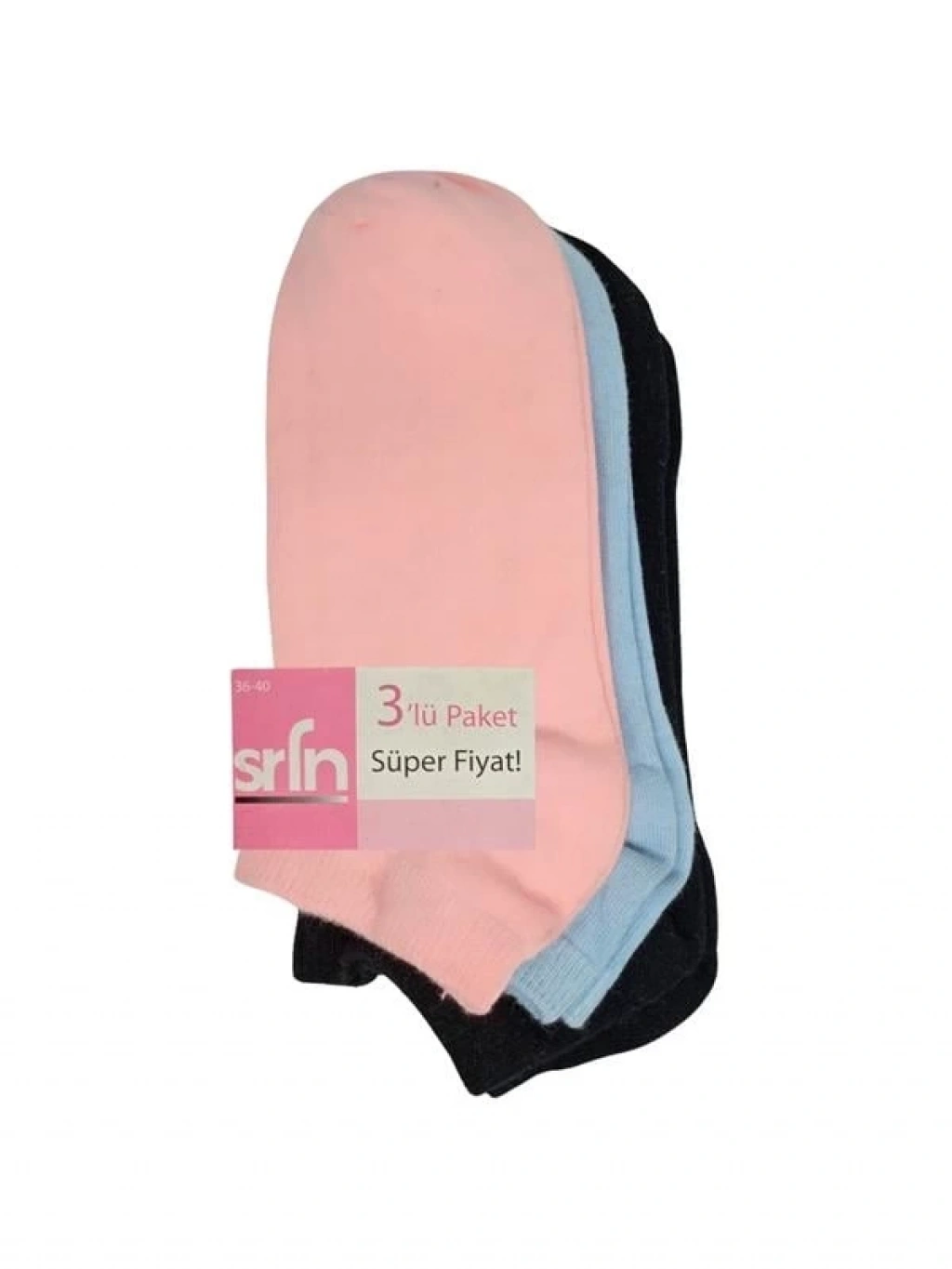 SRFN Kadın Patik Çorap 3 lü düz renkli