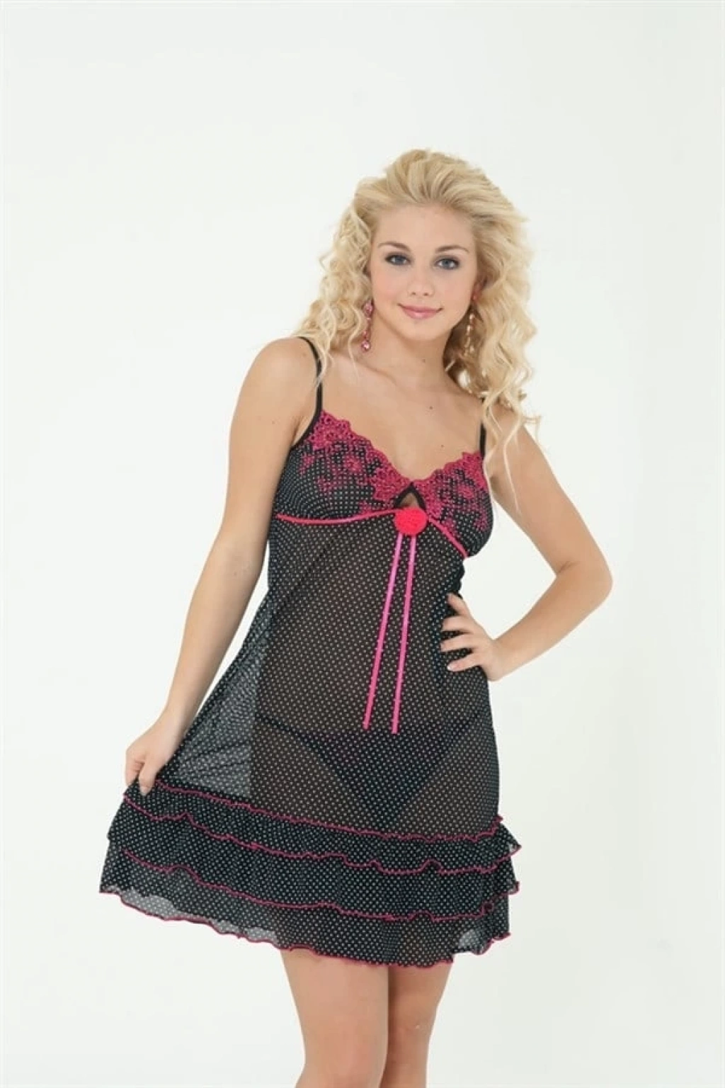 Şık Siyah Dantelli Babydoll Gecelik Brf1297