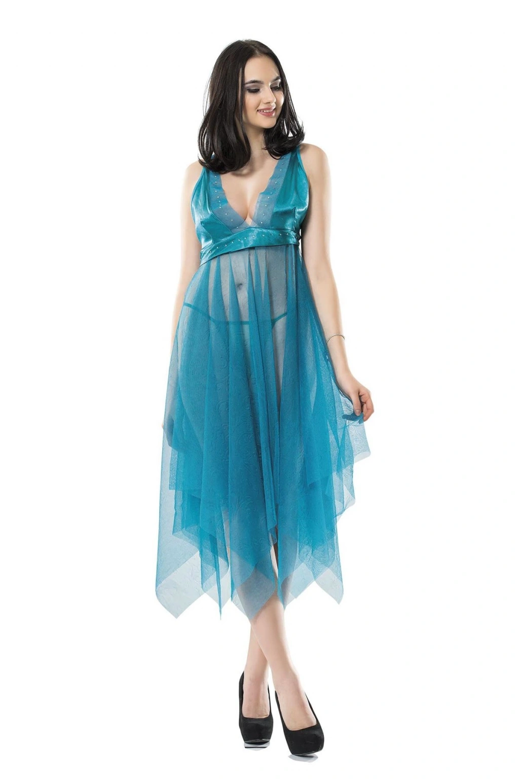 Sistina 637-B Turkuaz Gecelik Üstün Kalitede Kumaşlardan üretilmiştir. Özel Paketinde Gönderilmektedir. Kumaş türü : %10 Saten %90 Likralı Tül Ürün içeriği: Gecelik S/M - (36-38) L/XL - (40-42) Bedenlere olmaktadır.