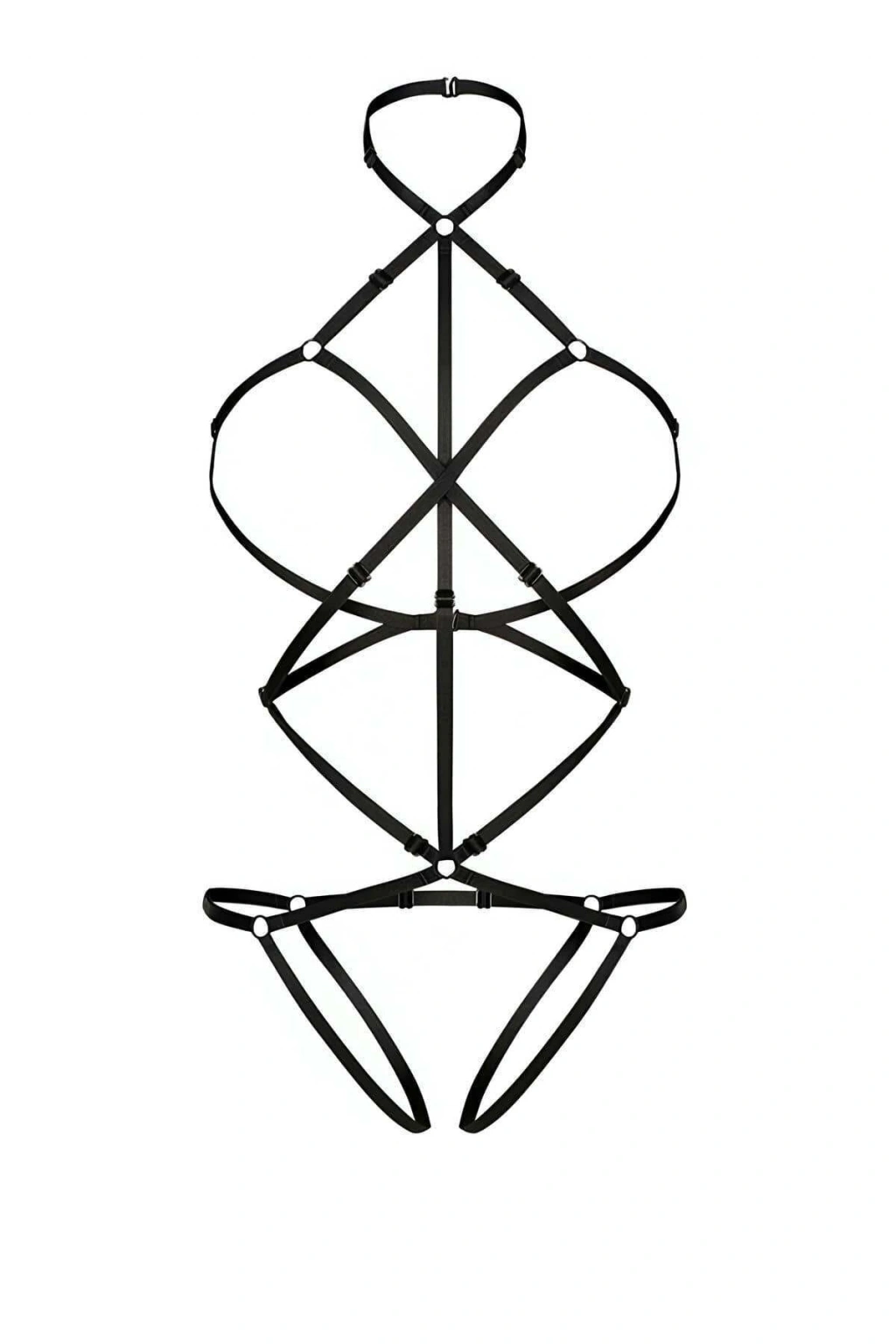 Siyah Body Harness Tam Vücut Boyunluklu Metal Halka Detaylı - Brf262