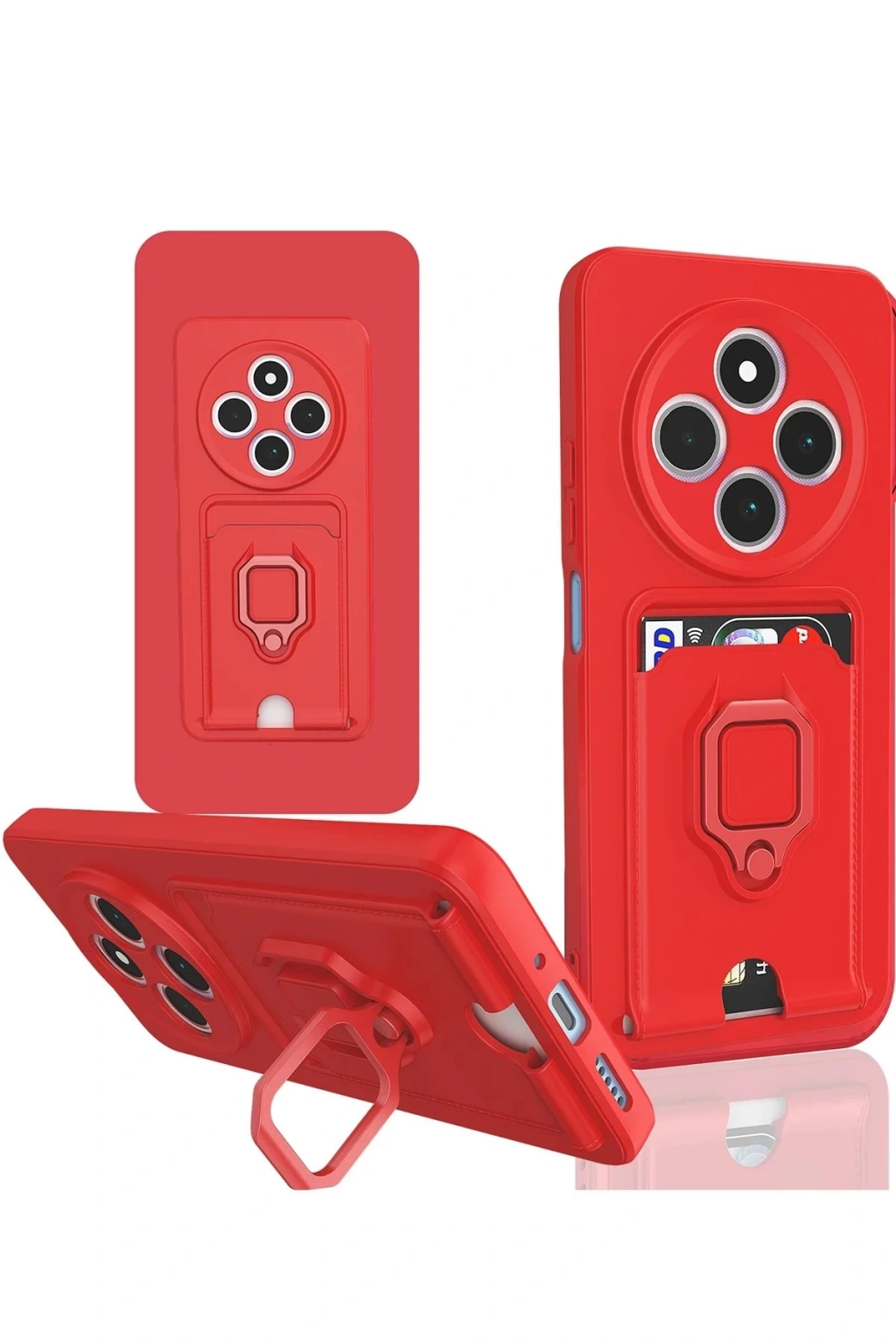 • Xiaomi Redmi 14C Kılıf Zuma Kartvizitli Yüzüklü Silikon - Kırmızı