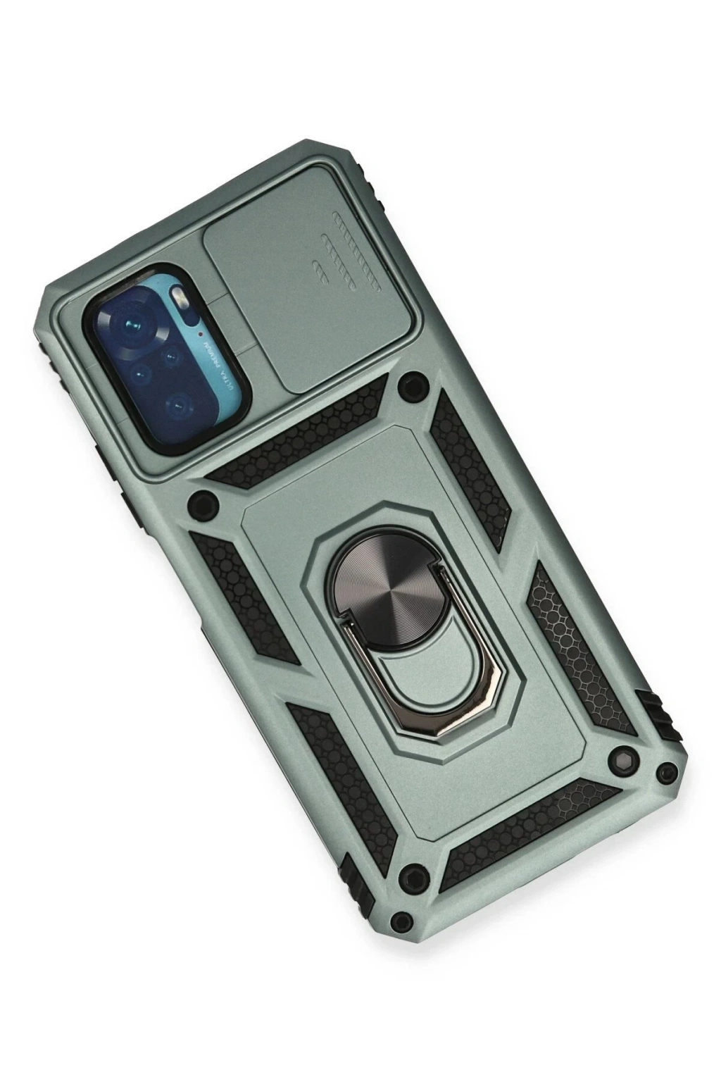 Xiaomi Redmi Note 10 Kılıf Pars Lens Yüzüklü Silikon - Yeşil