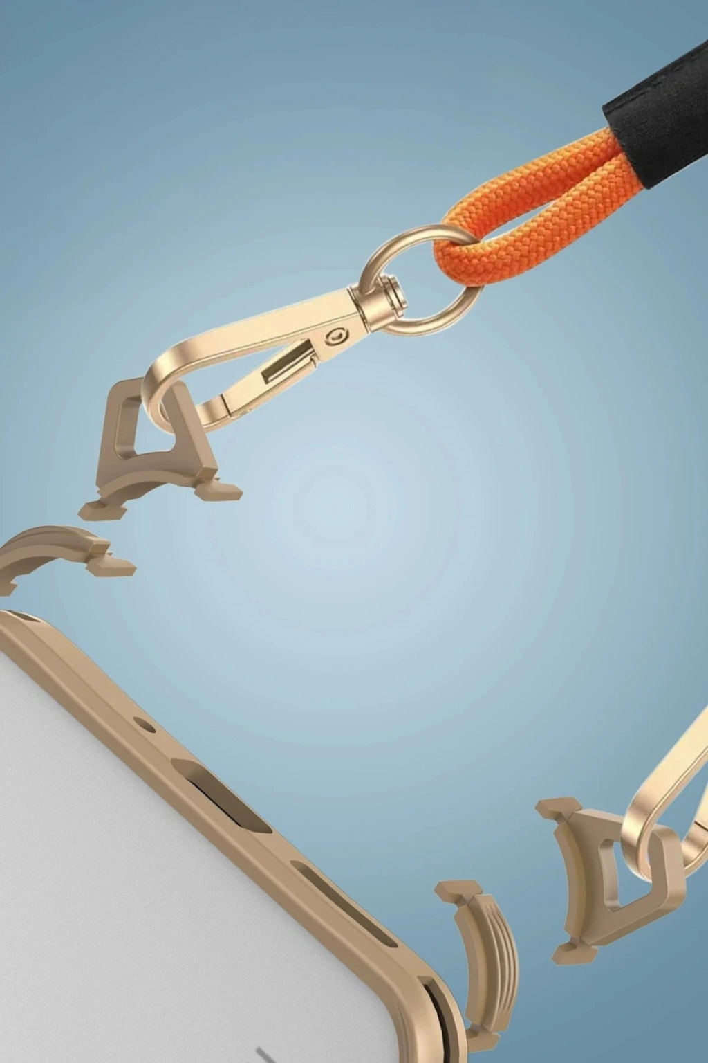 Kılıfın alt kısmındaki değiştirilebilir bağlantı noktaları sayesinde askı aparatı kolayca takılıp çıkarılabilir