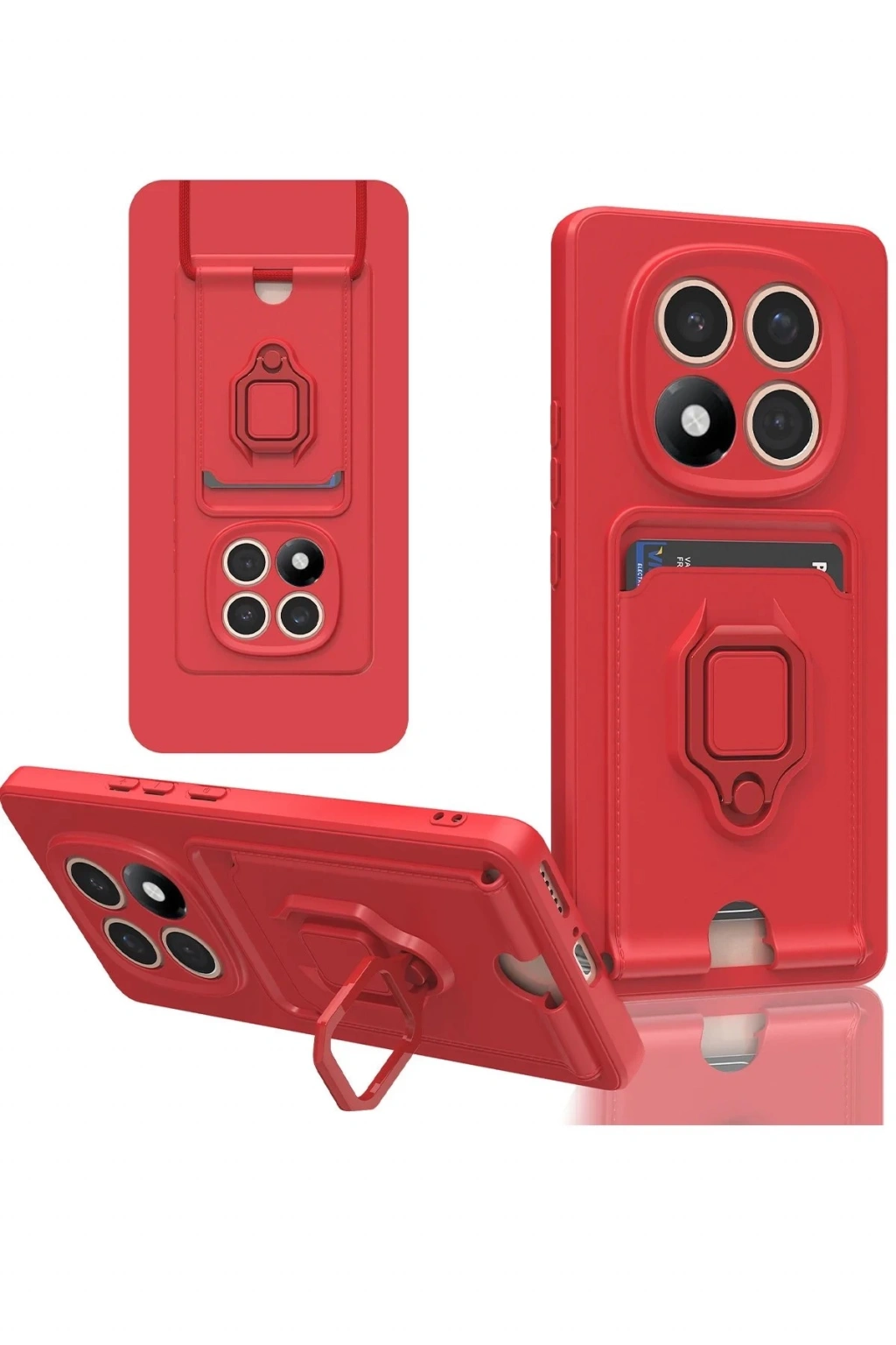 • Xiaomi Redmi Note 14 Pro 4G Kılıf Zuma Kartvizitli Yüzüklü Silikon - Kırmızı